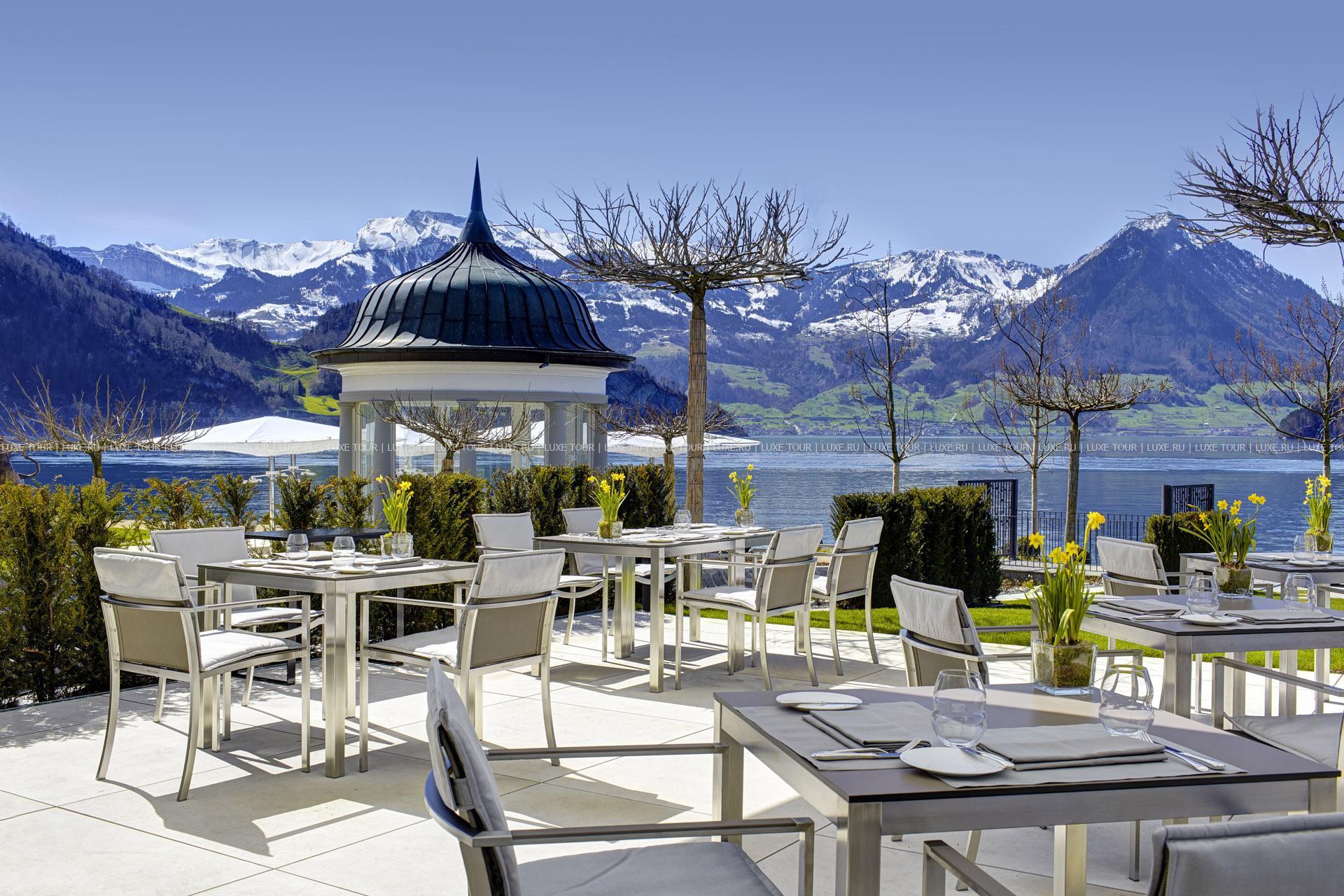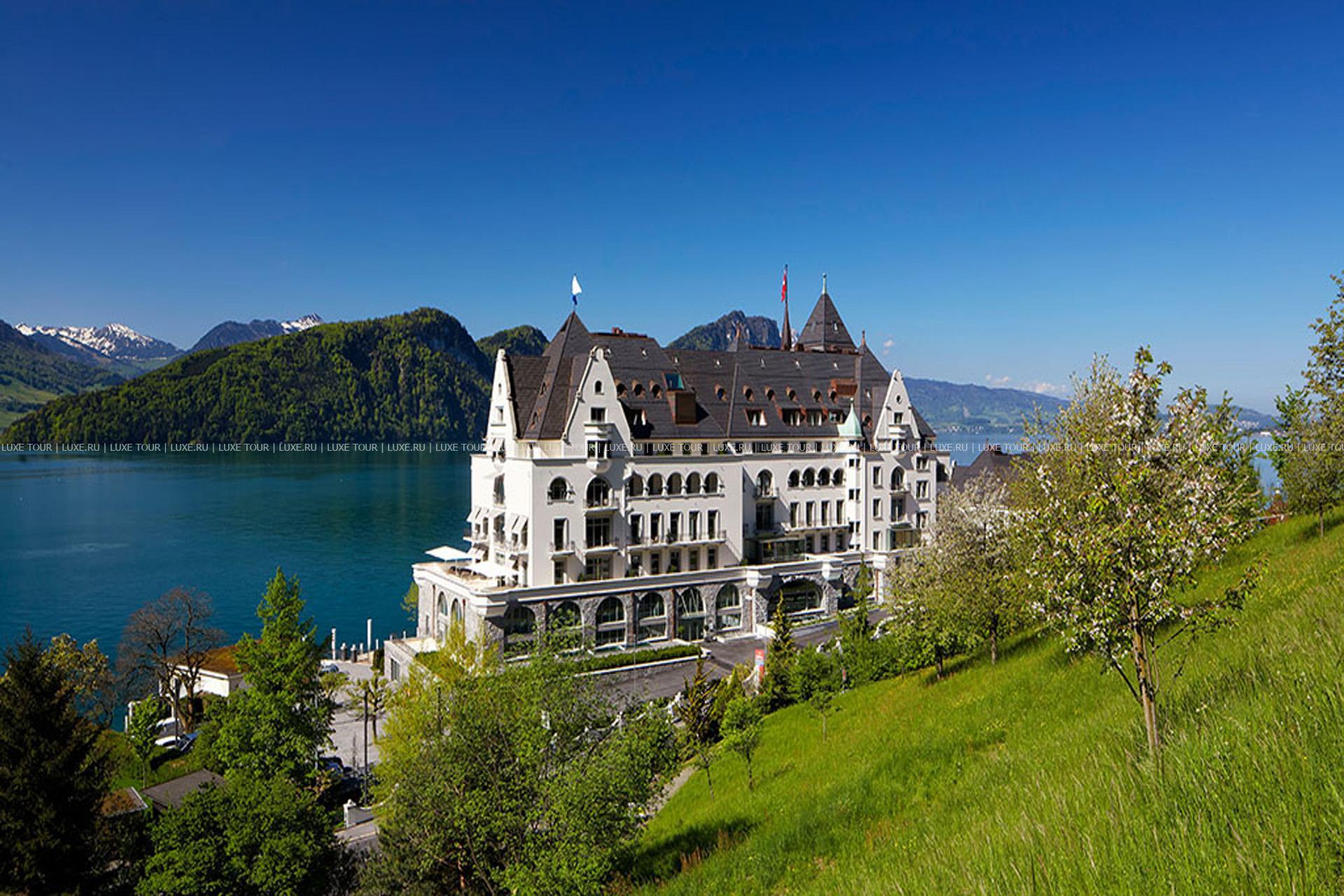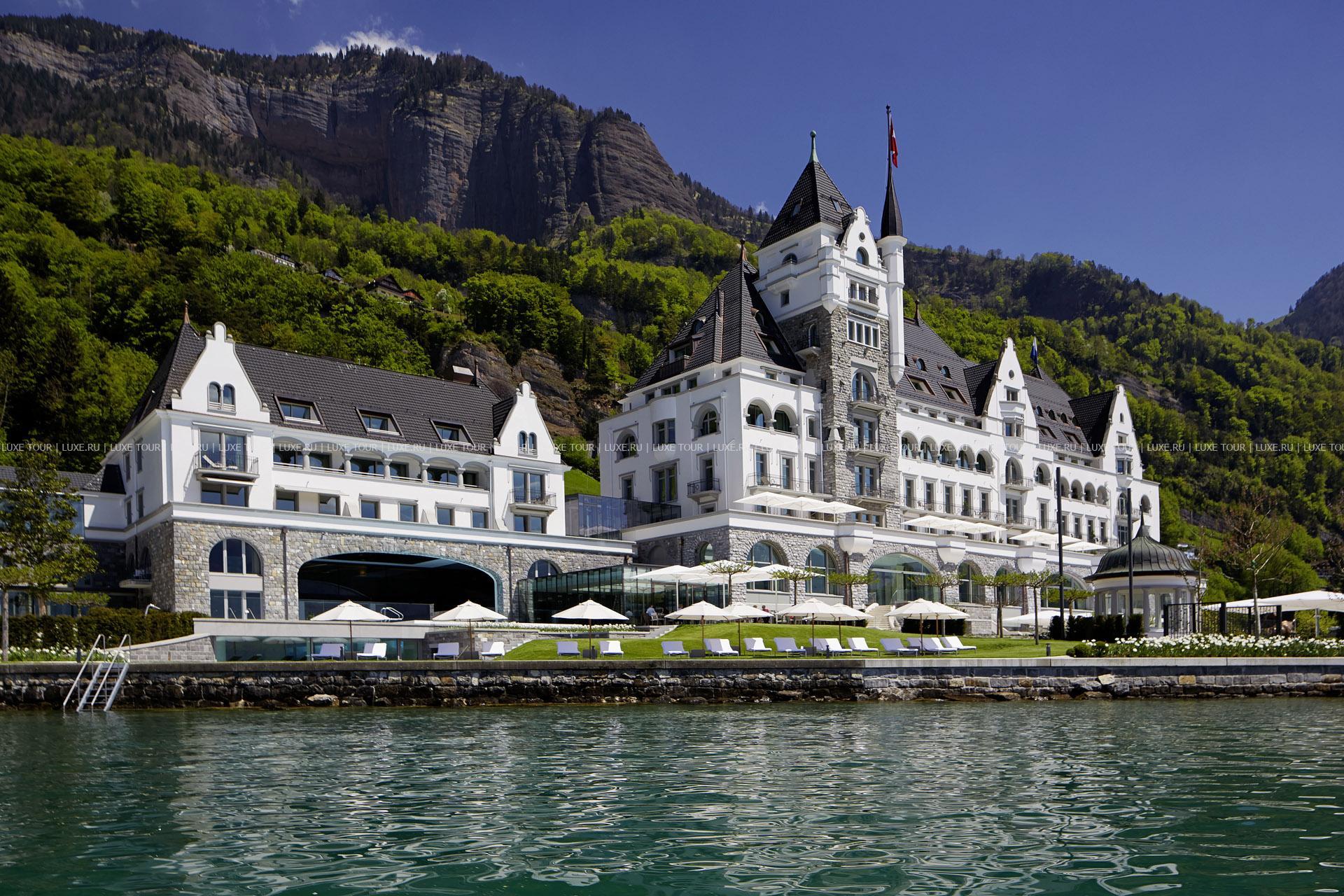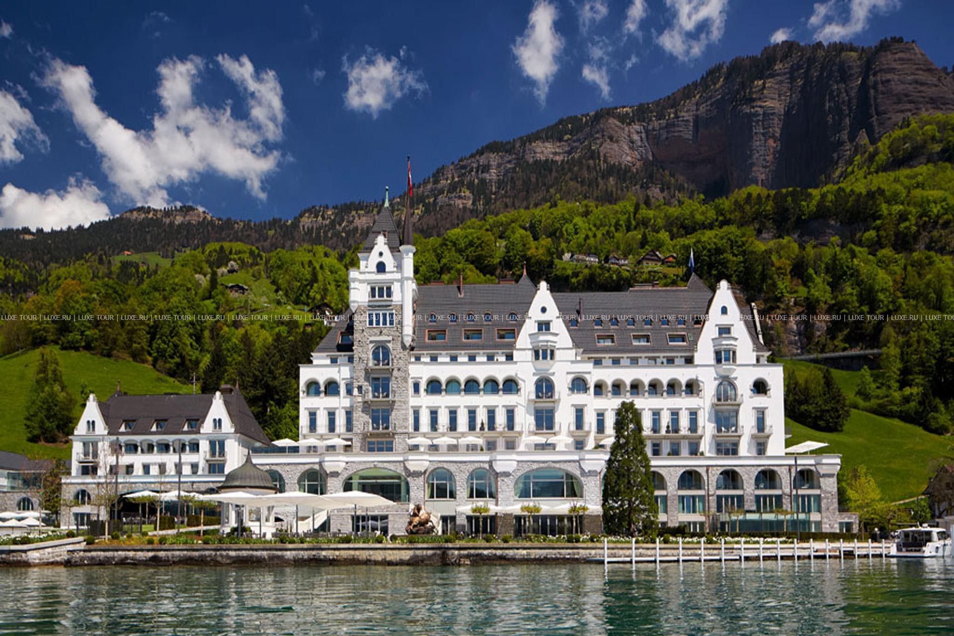 На самом берегу сверкающего Люцернского озера, у подножья величественной горы Риги возвышается Park Hotel Vitznau Швейцария – сказочный дворец с белоснежным фасадом, галереями и башенками. Великолепный отель был основан Йозефом Боном и в 1903 г. построен по проекту известного архитектора Карла Коллера. За более чем столетнюю историю Park Hotel Vitznau Швейцария принимал многих именитых гостей из разных сфер, что и нашло отражение в необычной концепции отеля: чудесный дворец состоит из шести галерей, отражающих различные тематики – от искусства и финансов до гастрономии и здоровья. В зависимости от расположения оформлены и элегантные номера отеля, причем, каждый в индивидуальном стиле, а с их балконов открывается чарующий вид на озеро и горы. Помимо этого гостей ждет множество других открытий. Изысканные рестораны, награжденные «мишленовскими» звездами и баллами гида Го-Мийо, шесть винных погребов, в которых хранится более 30 000 бутылок лучших вин Старого и Нового Света, роскошный СПА-комплекс площадью 2000 м2, большой открытый бассейн с подогревом и панорамным видом на озеро, разнообразие спортивных развлечений и многое другое. Park Hotel Vitznau Швейцария сочетает очарование старины и первоклассный современный комфорт.