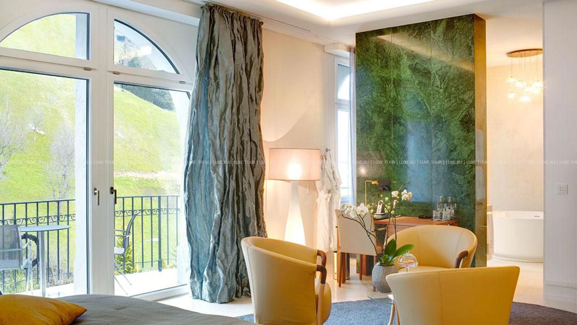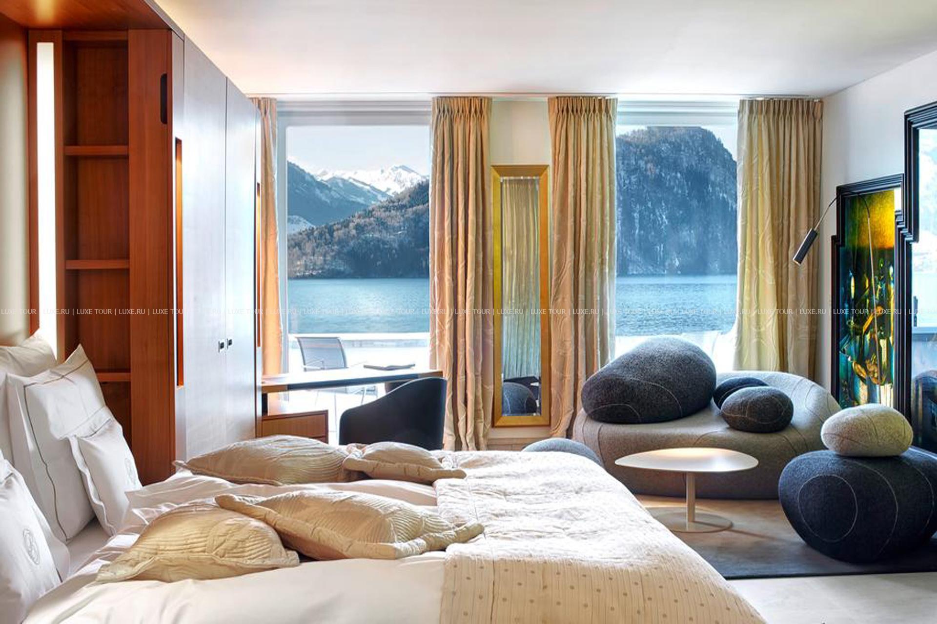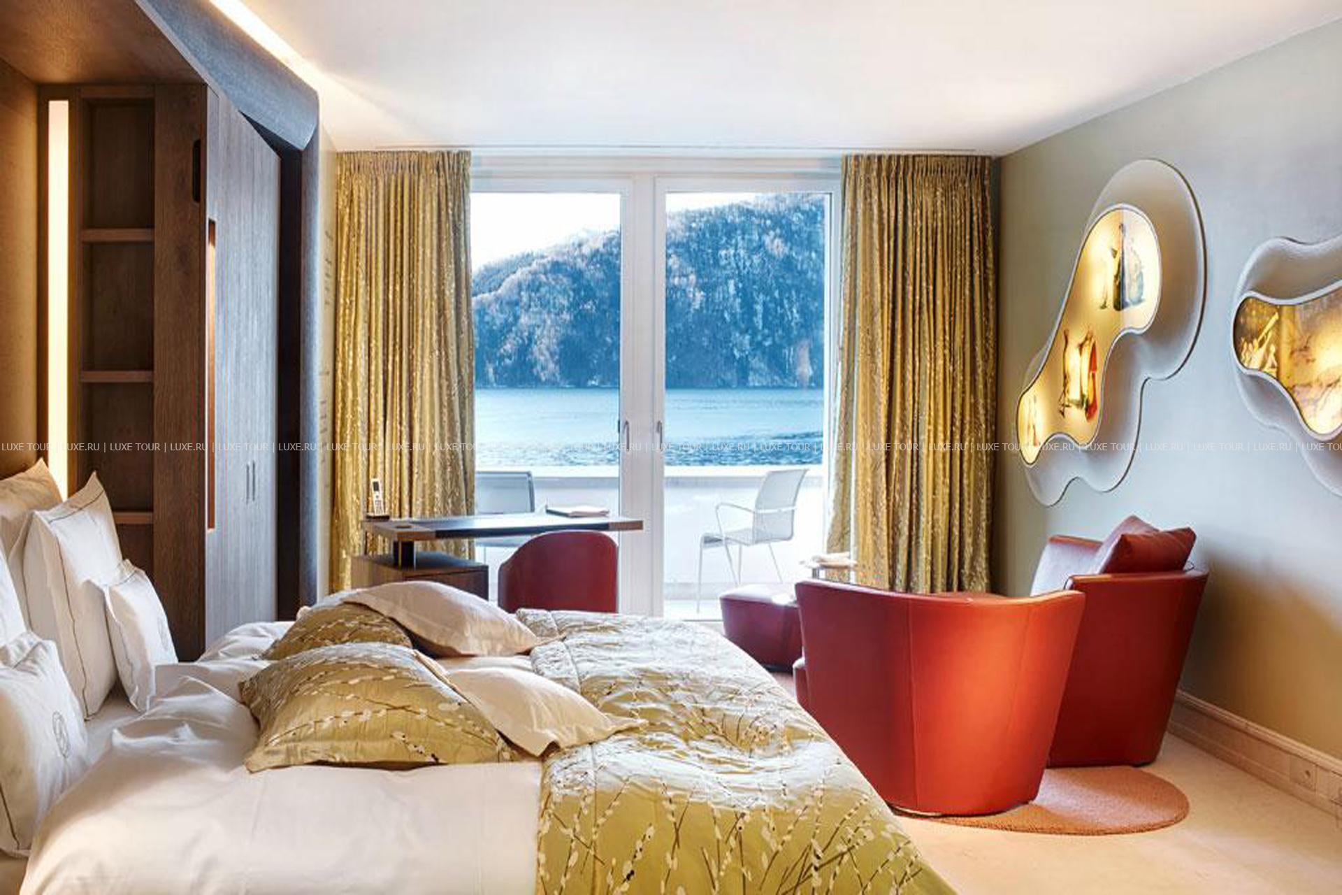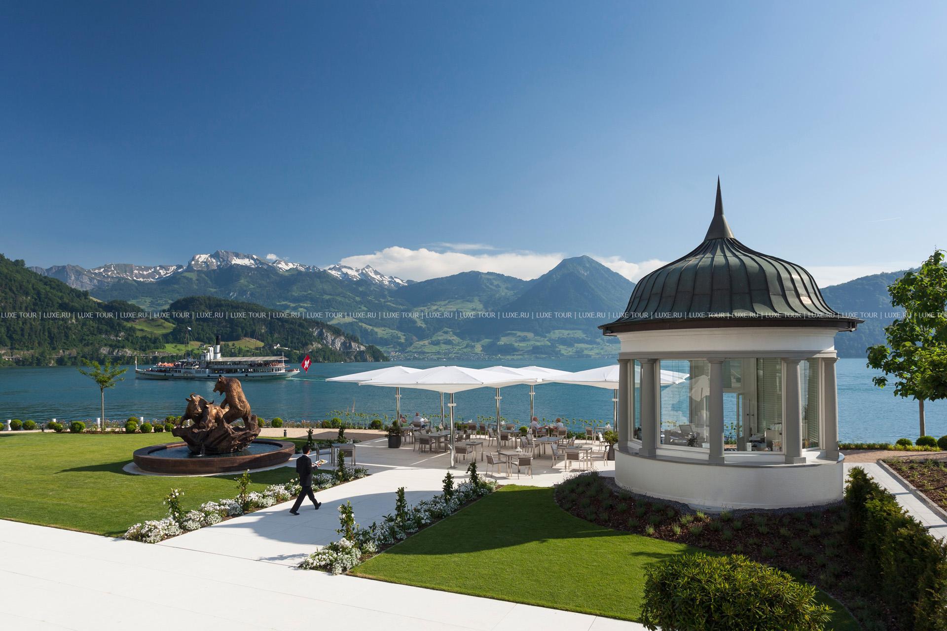 На самом берегу сверкающего Люцернского озера, у подножья величественной горы Риги возвышается Park Hotel Vitznau Швейцария – сказочный дворец с белоснежным фасадом, галереями и башенками. Великолепный отель был основан Йозефом Боном и в 1903 г. построен по проекту известного архитектора Карла Коллера. За более чем столетнюю историю Park Hotel Vitznau Швейцария принимал многих именитых гостей из разных сфер, что и нашло отражение в необычной концепции отеля: чудесный дворец состоит из шести галерей, отражающих различные тематики – от искусства и финансов до гастрономии и здоровья. В зависимости от расположения оформлены и элегантные номера отеля, причем, каждый в индивидуальном стиле, а с их балконов открывается чарующий вид на озеро и горы. Помимо этого гостей ждет множество других открытий. Изысканные рестораны, награжденные «мишленовскими» звездами и баллами гида Го-Мийо, шесть винных погребов, в которых хранится более 30 000 бутылок лучших вин Старого и Нового Света, роскошный СПА-комплекс площадью 2000 м2, большой открытый бассейн с подогревом и панорамным видом на озеро, разнообразие спортивных развлечений и многое другое. Park Hotel Vitznau Швейцария сочетает очарование старины и первоклассный современный комфорт.