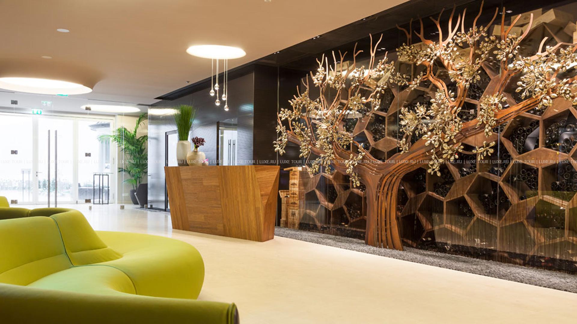 - Гордость отеля – 6 винных погребов, в которых хранится более 30 000 бутылок вина и 4 000 сортов вин: изысканные французские вина, вина Старого и Нового Света, в том числе – раритетные винтажные вина, например, Chateau d’Yquem 1811 года, и лучшие сорта шампанского. В погребах регулярно проходят дегустации вин.