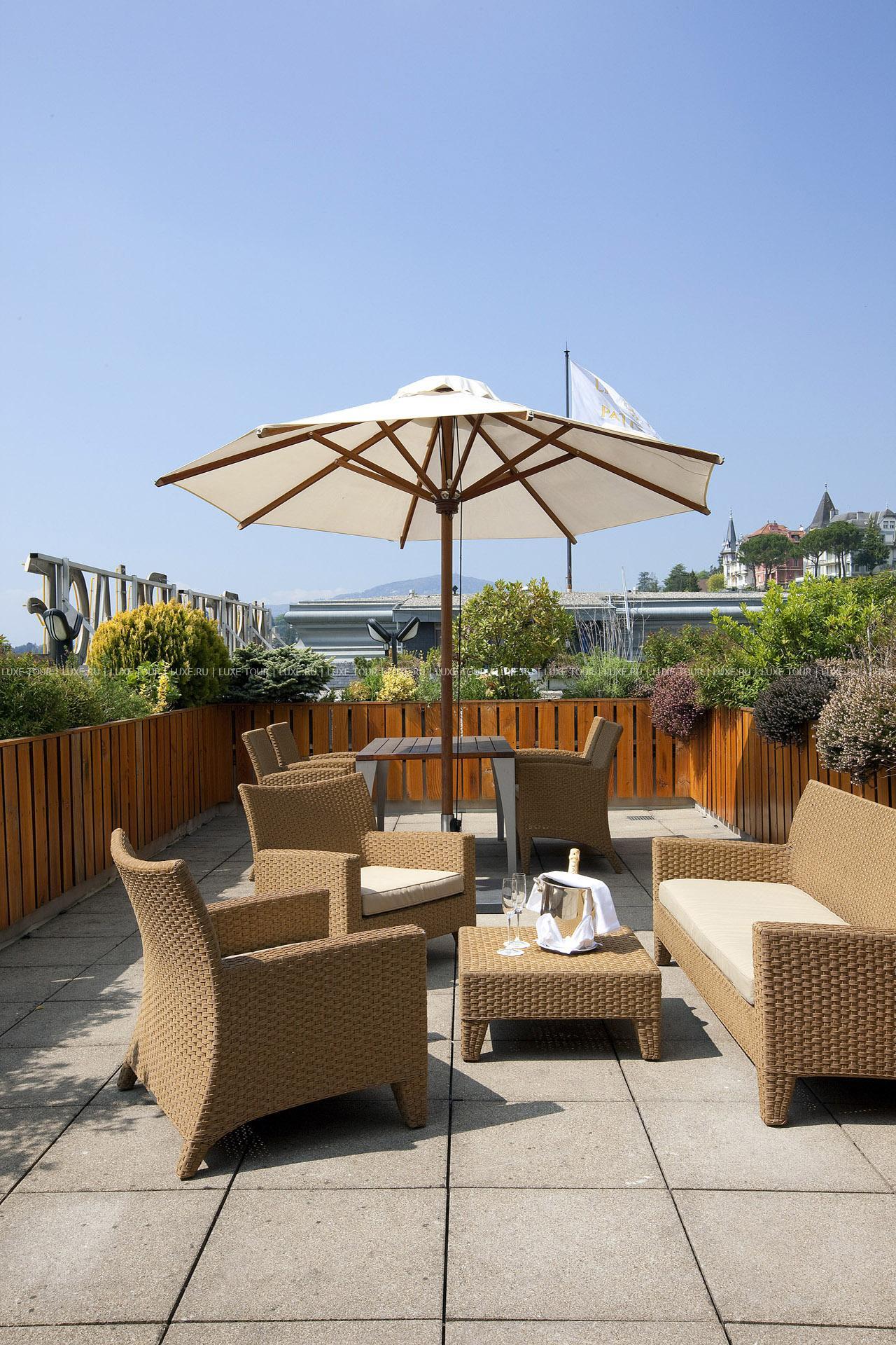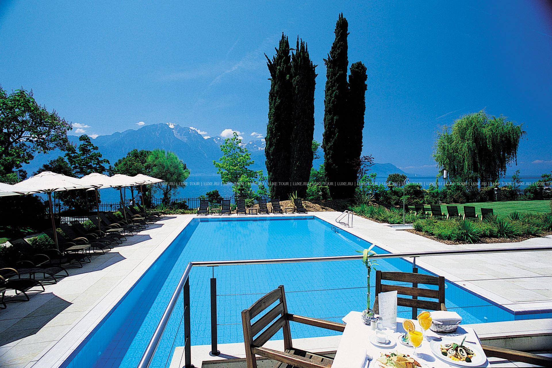 Отель расположен в центральной части Монтрё, в часе езды от международного аэропорта Женевы и 2 часах от международного аэропорта Цюриха. Грандиозное здание, настоящая жемчужина стиля Belle Epoque, впервые открыло свои двери в 1906 году. С начала прошлого столетия отдохнуть на берегах Женевского озера приезжали члены европейских королевских и аристократических династий, прославленные деятели науки и искусства, знаменитые политики и спортсмены. Здесь часто бывали Сара Бернар и Рихард Штраус, а Владимир Набоков провел целых 16 лет своей жизни.