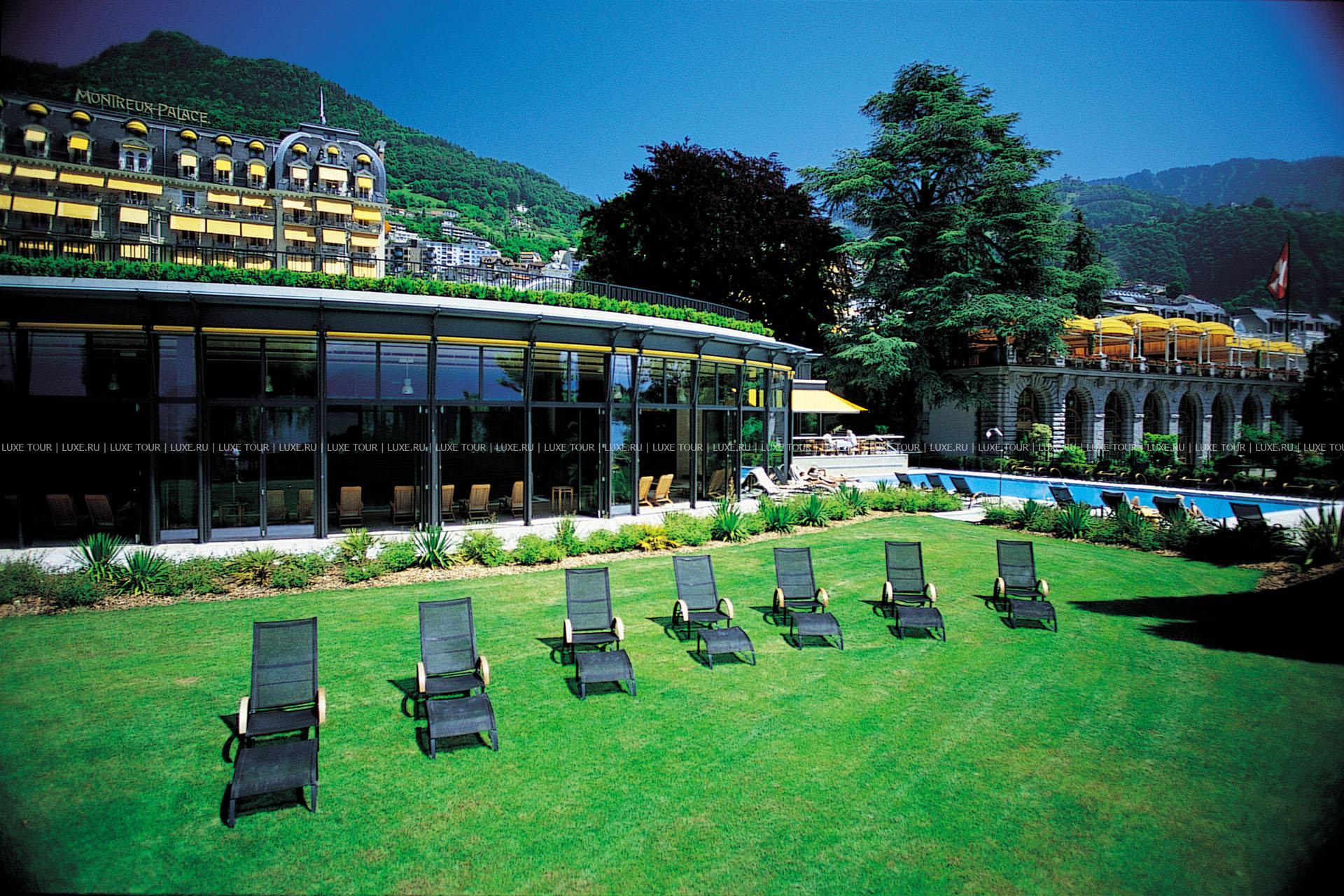 Точно так же, как и в начале прошлого века, перед фасадом расстилается романтический парк с фонтанами, пышной растительностью, изумрудными лужайками и разбегающимися от гостиницы дорожками. Со стороны озера размещается просторная и уютная набережная с замечательными цветочными клумбами и пальмовыми деревьями, приглашающая гостей совершить незабываемую прогулку по живописным берегам озера. Его глубокая синева, торжественные альпийские вершины, воспетый Байроном Шильонский замок, миниатюрный Монтрё со своими небольшими улочками и средневековыми зданиями дополняют изысканное убранство номеров и холлов. Особое внимание к деталям и освещению, оформление в красных, синих и бледно-желтых тонах, антикварные мелочи, обогащающие атмосферу Belle Epoque, создают ощущение элегантности и классического стиля начала прошлого века, тесно сочетающееся со всеми составляющими современного комфорта. Элегантная архитектура, продуманное убранство, великолепная кухня и безупречный сервис принесли гостинице множество международных наград, среди которых особенно памятны оценки Condé Nast Traveller, Travel + Leisure и Bilanz Magazine, поставивших Fairmont Le Montreux Palace в ряд лучших отелей не только Швейцарии, но и мира.