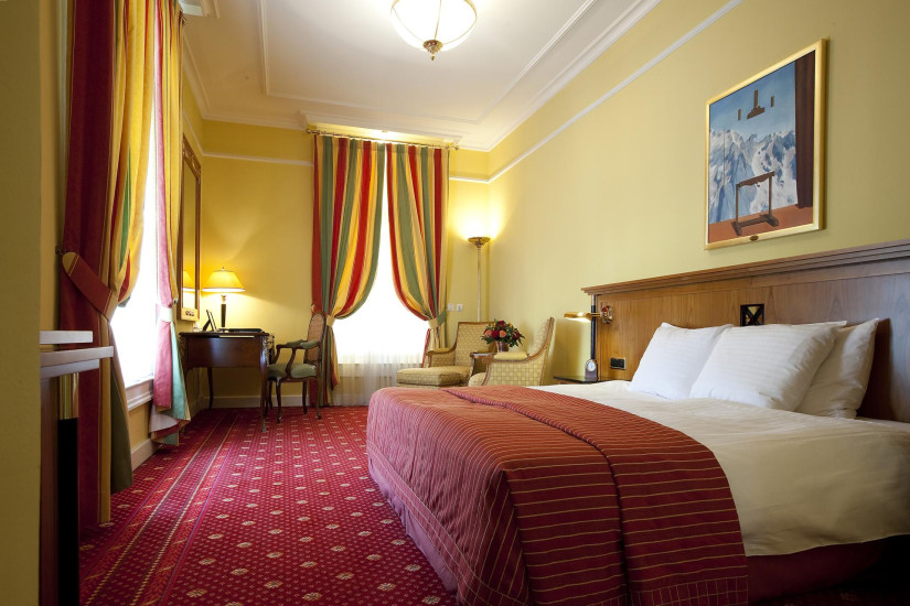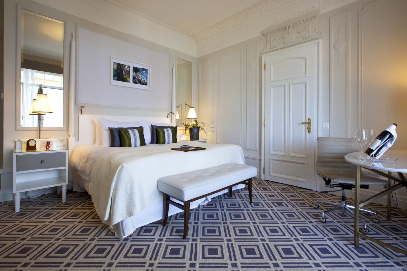 - Всего в отеле 236 номеров различных категорий, включая Fairmont Mountain View Rooms, Deluxe Mountain View Rooms, Fairmont Lake View Rooms, Deluxe Lake View Rooms, Signature Lake View Rooms, Junior Lake View Suites, Signature Lake View Suites, Panorama Lake View Suites, Bellevue Lake View Suites, Palace Lake View Suites. Из большинства номеров открывается вид на озеро. Большинство номеров включает балкон. Особое внимание к деталям и освещению, оформление в красных, синих и бледно-желтых тонах, антикварные мелочи, обогащающие атмосферу Belle Epoque, создают ощущение элегантности и классического стиля.