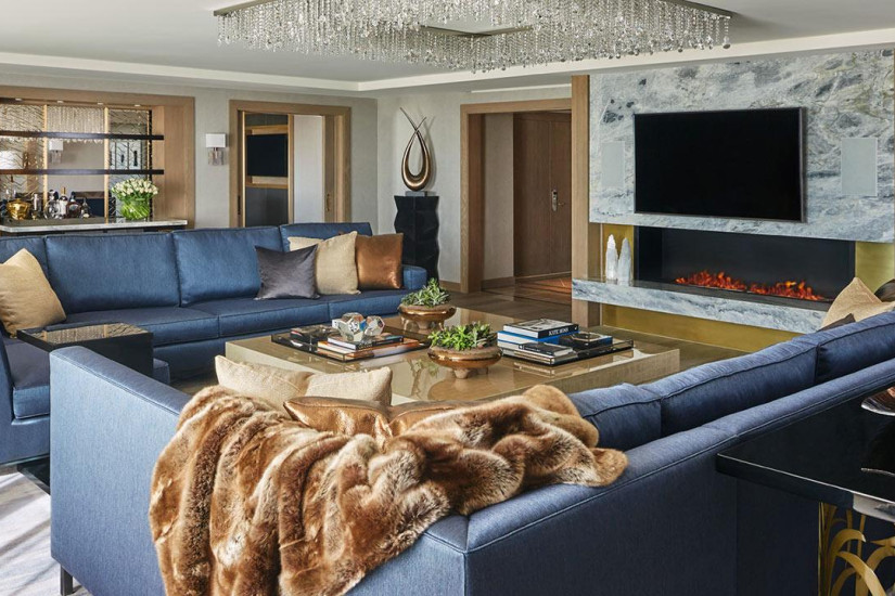 - 111 м2. Состоит из спальни с кроватью king-size, зоной отдыха и рабочей зоной, отдельной гостиной с обеденной зоной на 4 человека, мини-кухни, гардеробной, двух ванных комнат (одна - с ванной и отдельным душем, другая - с душем), двух балконов с видом на Hollywood Hills.