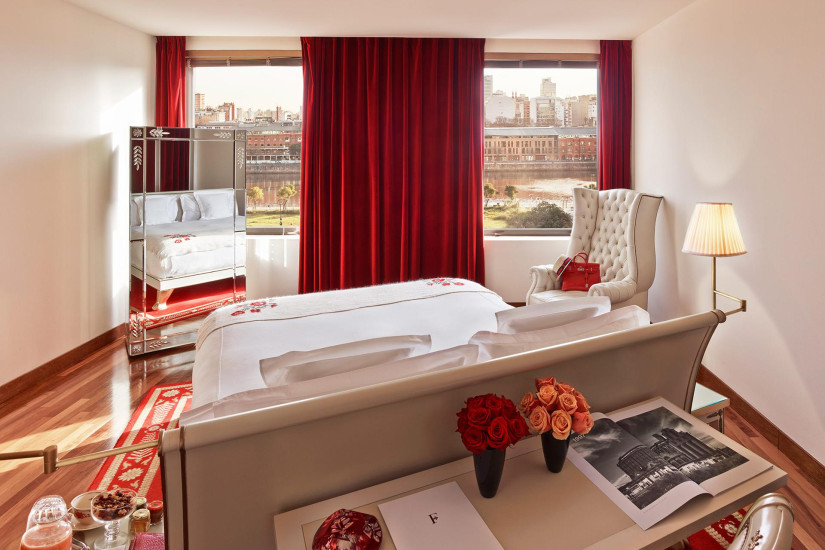 - 250 м2. Номер, урашенный работами современных аргентинских художников, состоит из двух спалени с кроватью king-size в каждой, отдельной гостиной с обеденной зоной, оборудованной кухни, кабинета, библиотеки, двух ванных комнат (одна - с гидромассажной ванной и отдельным душем), гардеробной, гостевой уборной. Вид на Пуэрто-Мадеро и на квартал Faena Art. Для гостей — услуги личного менеджера Experience Manager.