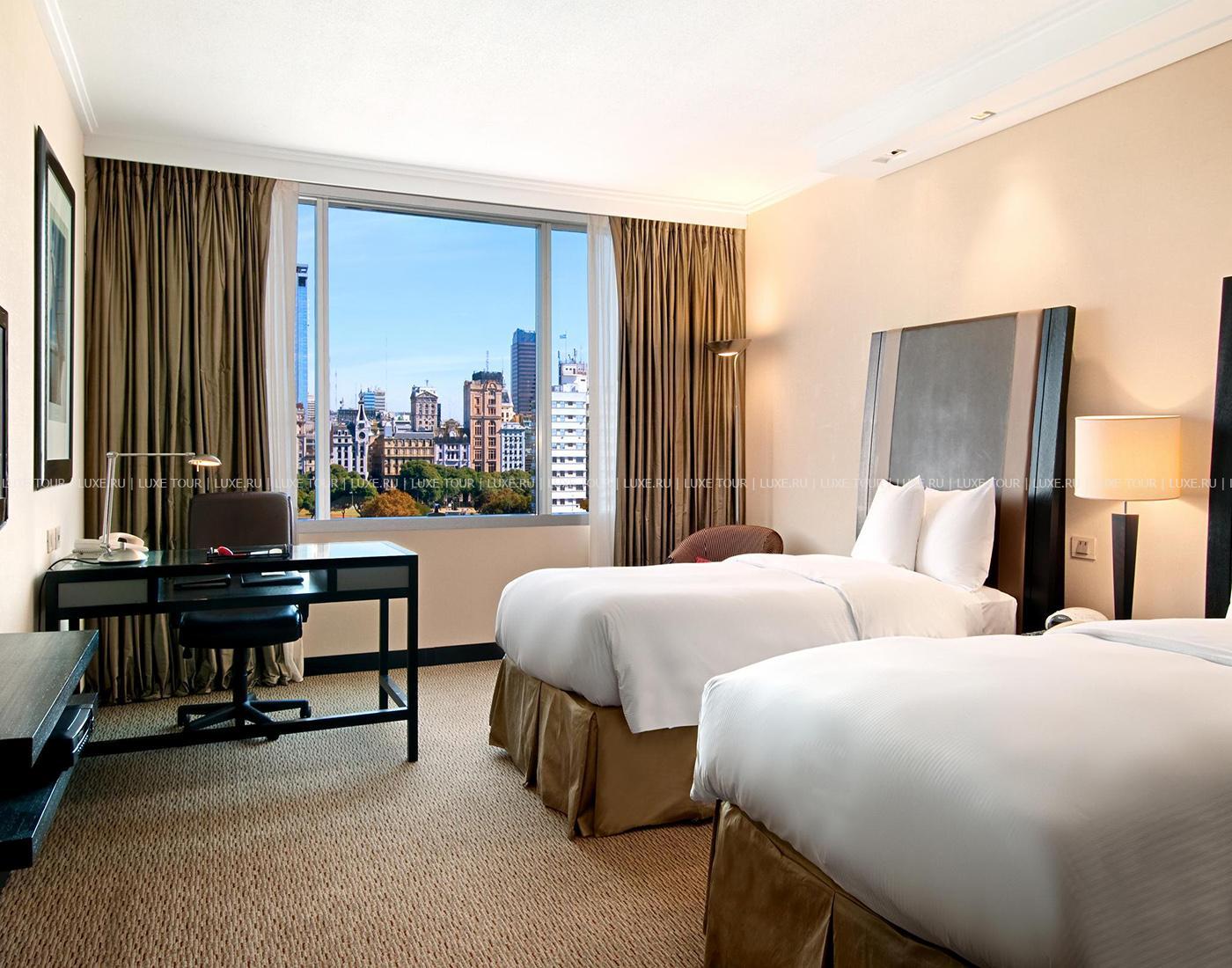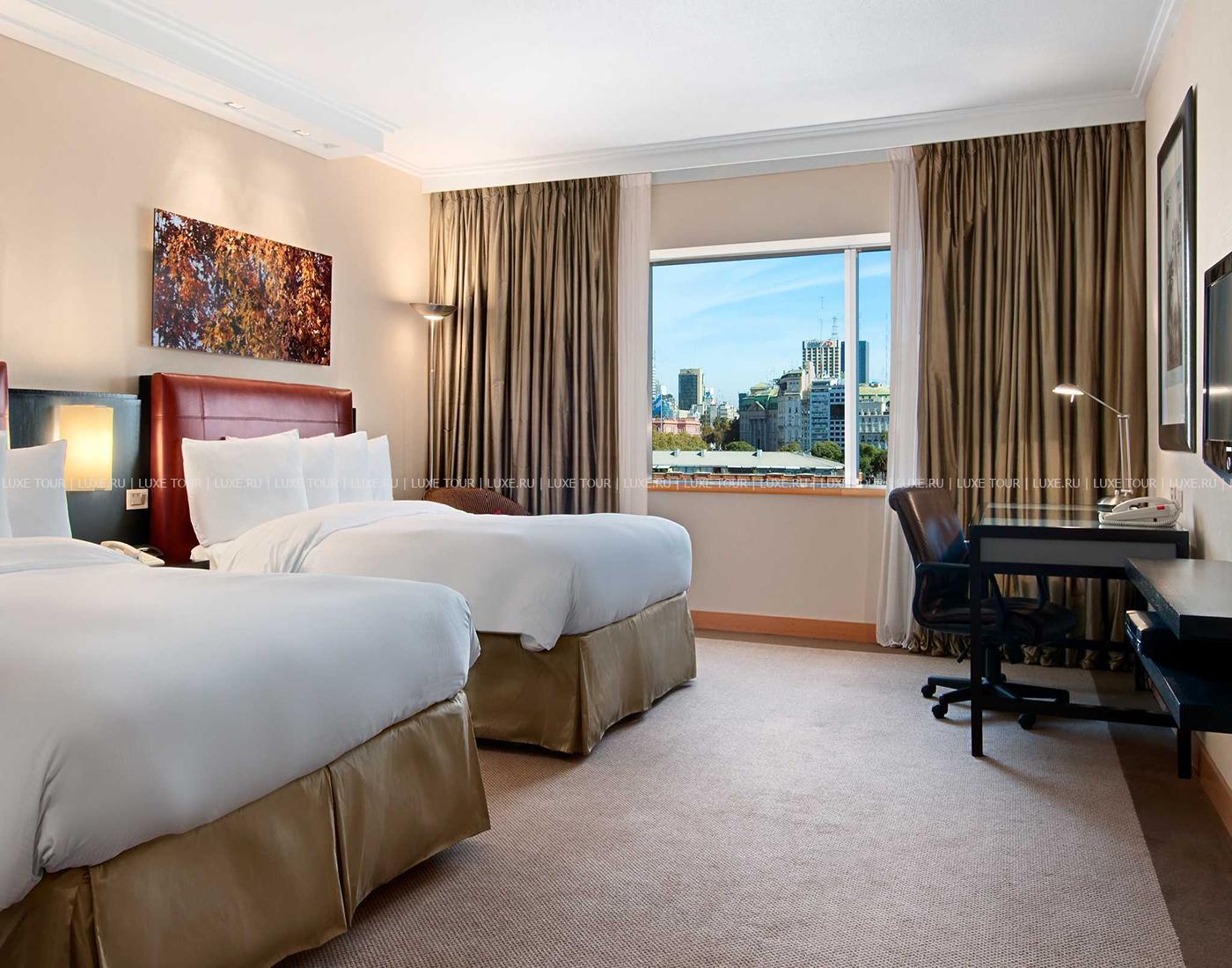 Отель расположен в районе Пуэрто-Мадеро Буэнос-Айреса, в нескольких минутах от исторического и делового центра города. Когда в этом, прилегающем к набережной и порту, районе были расположены доки и склады, но постепенно они реконструировались в отели, торговые центры, бары, рестораны, кинотеатры. В настоящее время район облюбован богемой и считается модным и престижным. Отвечая тенденциям времени, Hilton Hotel был построен в очень современном футуристическом стиле, комбинируя стекло и бетон. Отель прекрасно подходит для людей бизнеса.