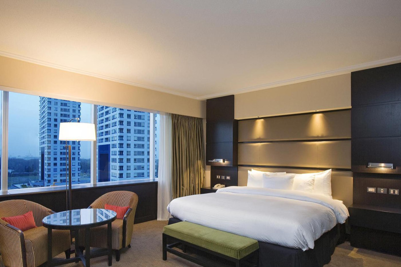 - 63 м2. Состоит из спальни с кроватью king-size, гостиной зоны, рабочей зоны, гардеробной, ванной комнаты с ванной и отдельным душем. Вид на город, реку или парк. Гостям предоставляется бесплатный доступ в Executive Lounge.