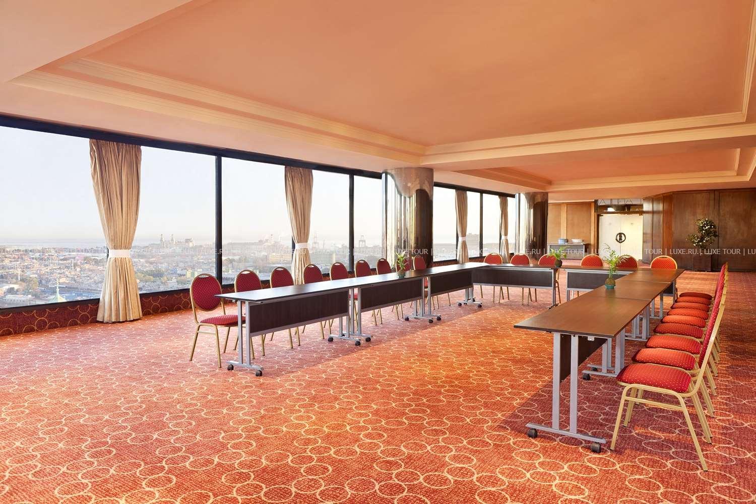 Отель располагает 15 современно оснащенными залами для банкетов и заседаний (включая бальный зал площадью 1277 м2) общей площадью 6500 м2 и максимальной вместимостью 1800 человек; совместно с залами соседнего отеля Park Tower — максимальная вместимость — 9000 человек. Для гостей — галерея магазинов, экскурсионное бюро, бизнес-центр, услуги секретаря, гостиная Link@Sheraton, Wi-Fi, шаттл-сервис, услуги прачечной и химчистки.