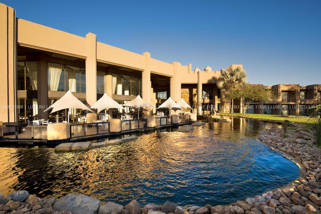 Элегантный отель расположен в живописных предместьях Виндхука, в 8 км от центра города. Из окон комфортабельных и современно оборудованных номеров открываются панорамные виды на раскинувшиеся вокруг невысокие горные массивы, опоясывающие рукотворный отельный «оазис», вместивший в себя невысокие стильные отельные здания, гольф-поле, бассейн, теннисные корты, корты для игры в сквош и развлекательный центр с казино.