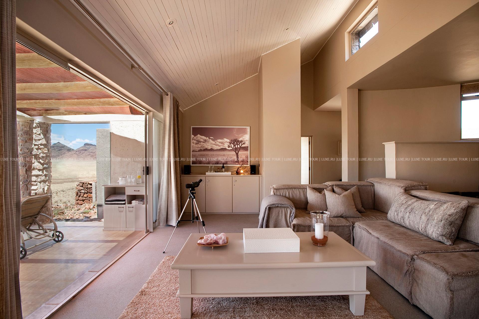 Один из лучших в регионе лоджей расположен рядом с зоной красных дюн Соссусвлей — самых высоких и живописных песчаных дюн в мире.