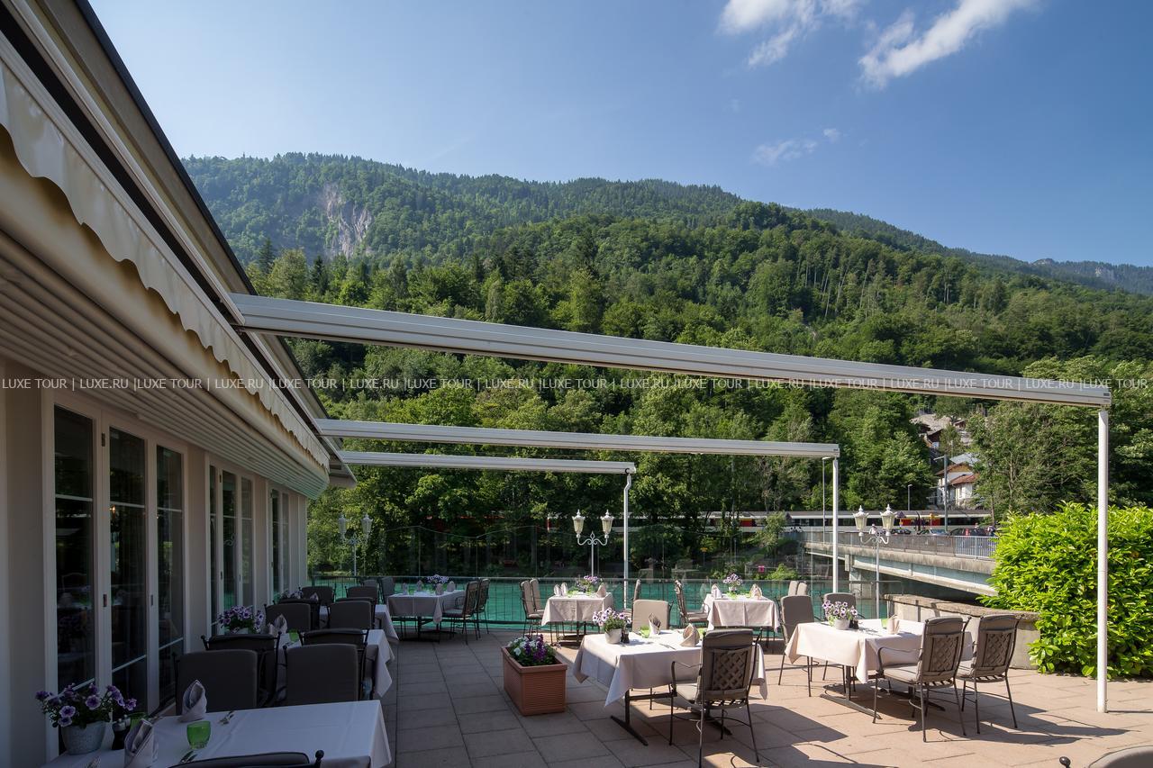 - Элегантный ресторан L'Ambiance с открытой террасой и видом на реку Аре и Альпы предлагает «шведский стол» с богатым выбором блюд швейцарской и интернациональной кухни.