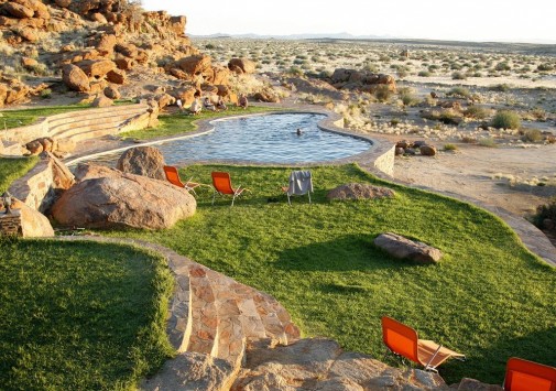 Бассейн с зоной отдыха. Из лоджа организуются различные сафари и экскурсии в каньон Рыбной реки, в том числе и полеты над каньоном на легком самолете, на термальные источники Аи-Аи, в леса алоэ.