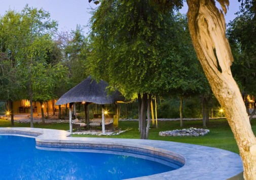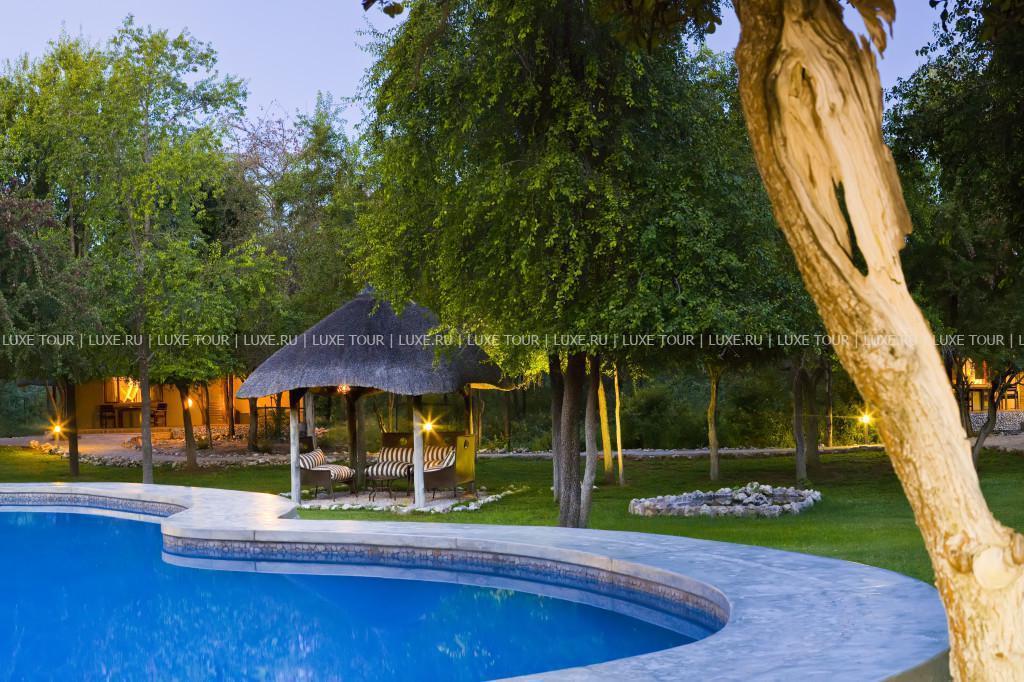 Лодж расположен в 8 км от восточного въезда в Национальный Парк Этоша,