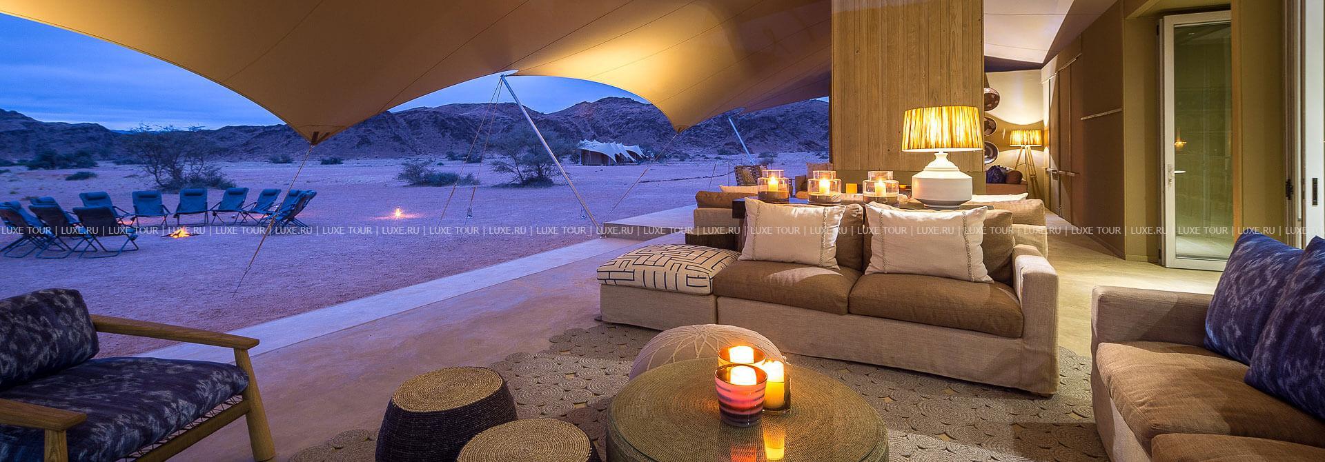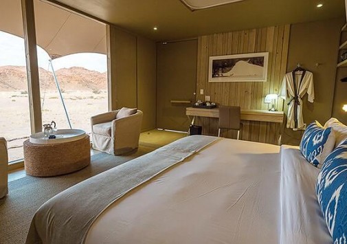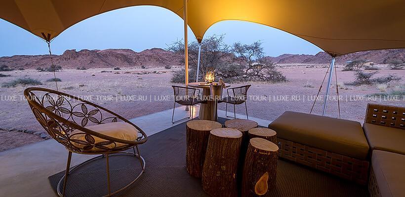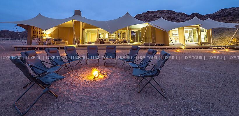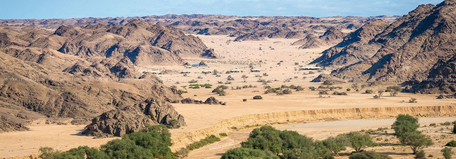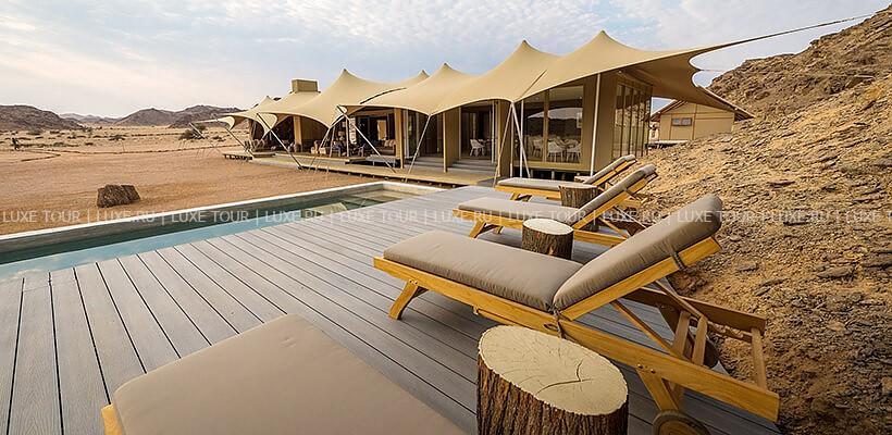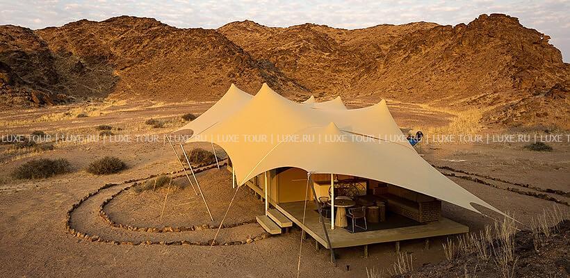 Skeleton Coast Camp был открыт в апреле 2000 года и предсталяет собой комплекс тентов-шатров, расположенных в непосредственной близости к Национальному парку Берега Скелетов. Лодж расположен на берегу реки Кумиб.