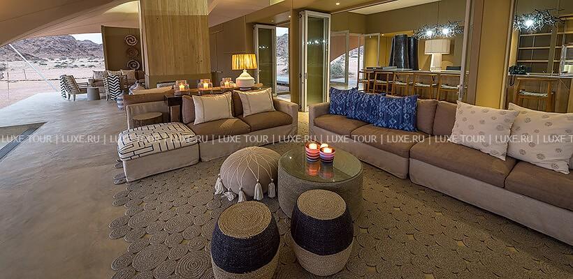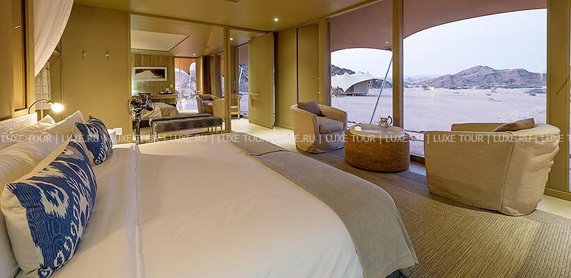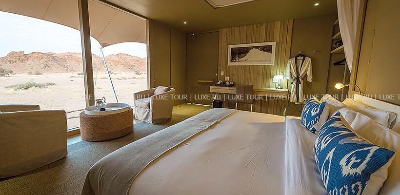Разнообразные развлекательные и познавательные мероприятия: полеты на самолете над Берегом Скелетов, джип-сафари по дюнам, гейм-драйвы в парке, визиты в традиционные деревушки местных жителей, экскурсия в колонию морских котиков.