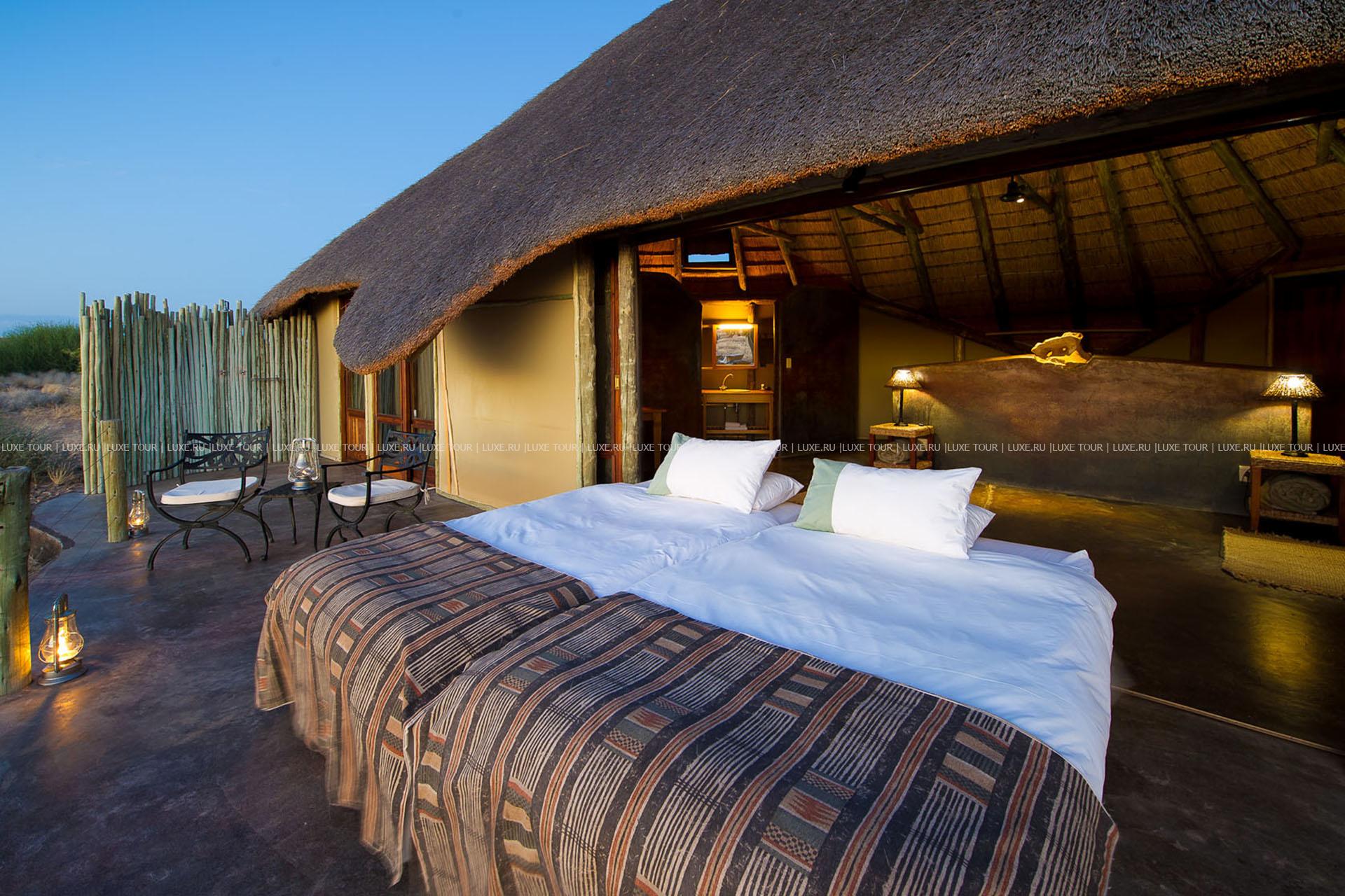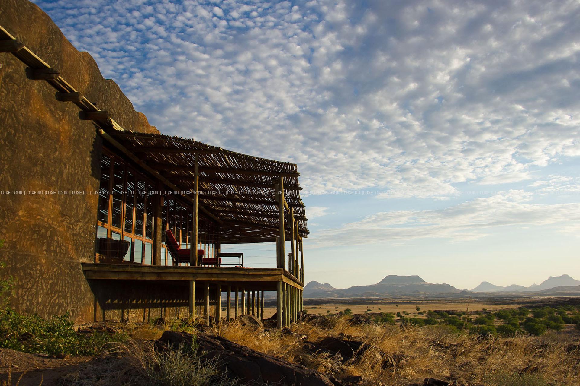 Помимо увлекательных сафари, гости лоджа могут также отправиться в экспедицию Твуфелфонтен, где сохранилось огромное количество наскальных рисунков или посетить местные деревушки и познакомиться с традиционным укладом жизни народностей дамара.