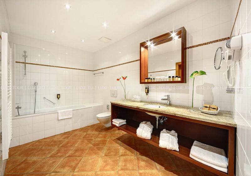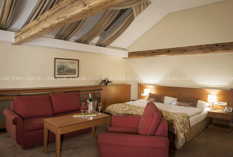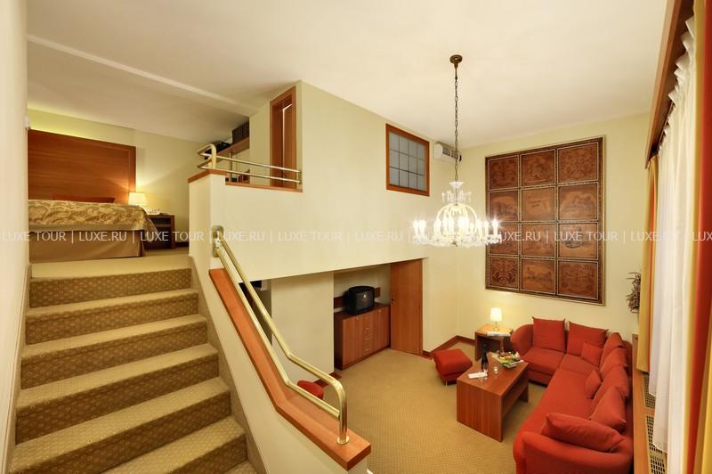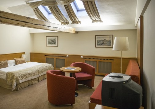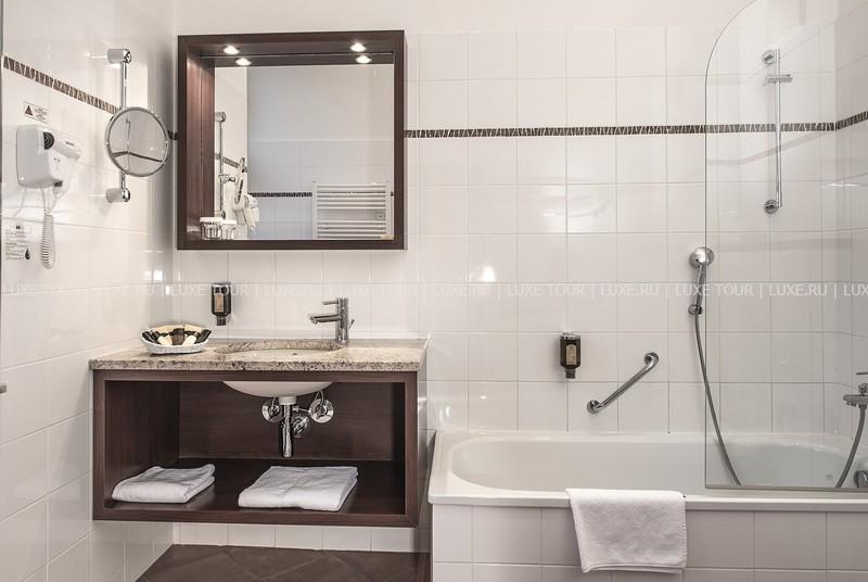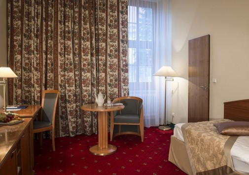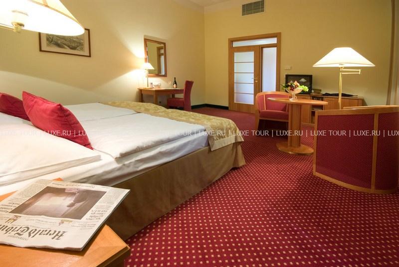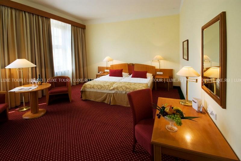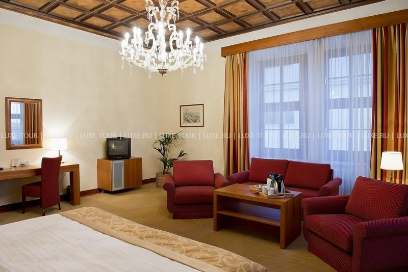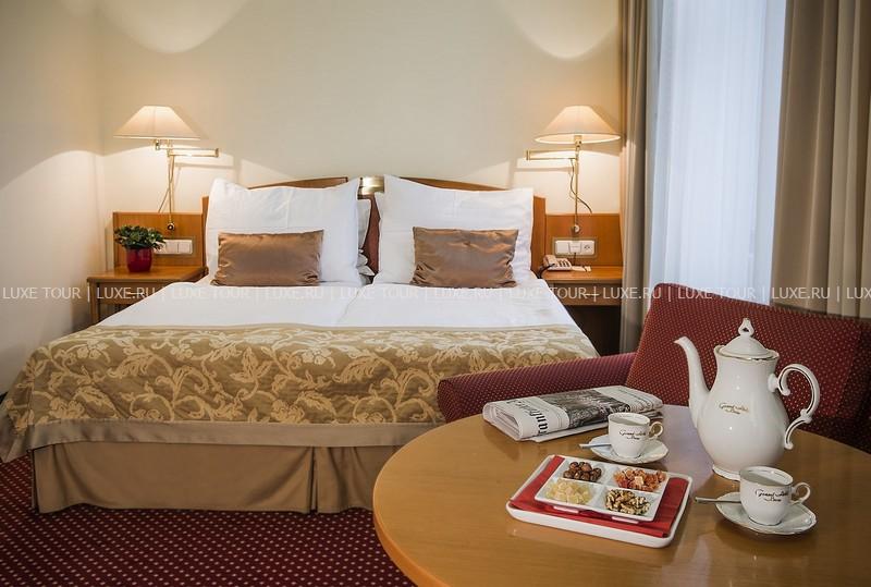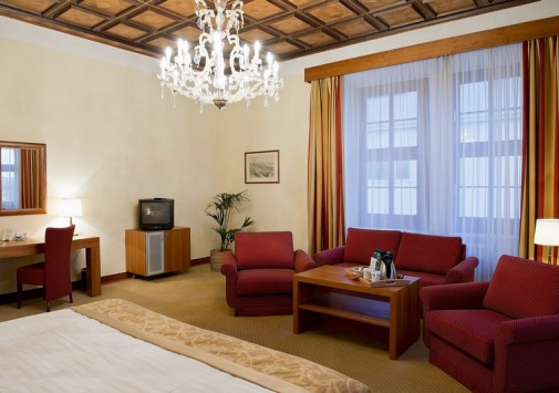 К услугам гостей предлагается 110 стильно оформленных номеров и сьютов, сауна и фитнес центр. Особого внимания заслуживает уникальный ресторан в зимнем саду - Le Grand. Здесь можно отведать блюда традиционной моравской кухни, приготовленные по старинным чешским рецептам. В Grand Cafe Bistro и Music Club также всегда рады видеть посетителей.