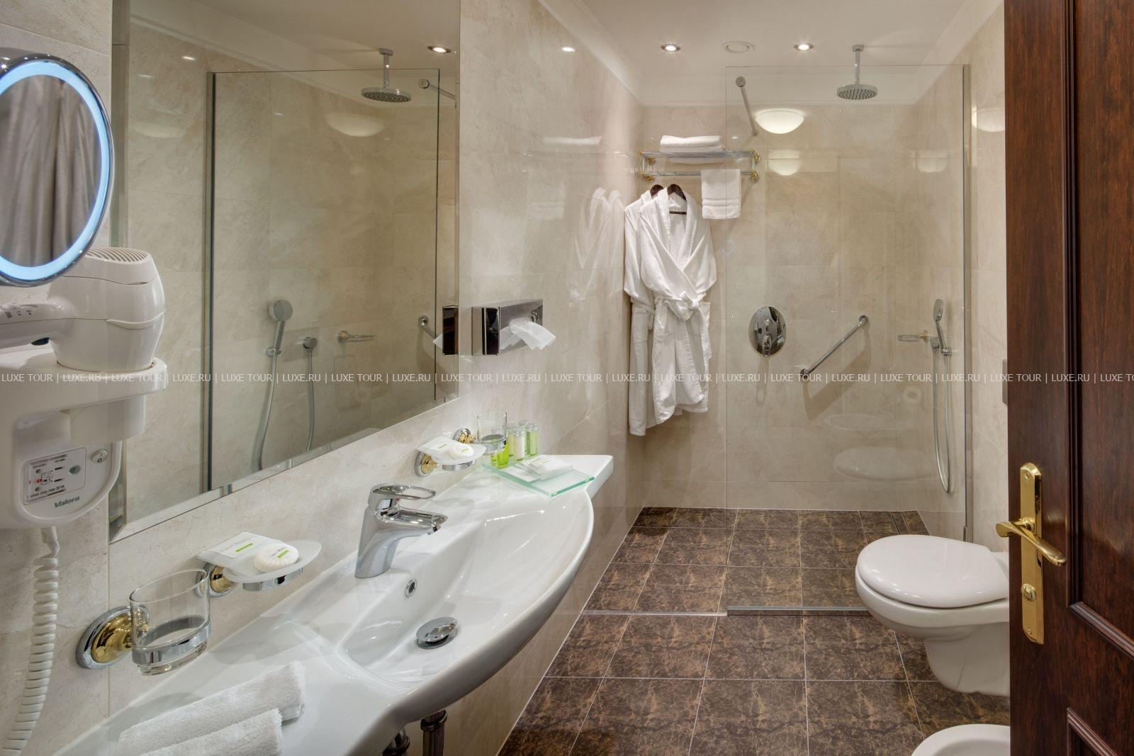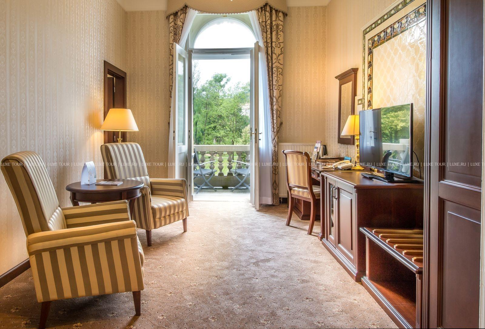 Прямо в санатории расположены кабинеты врачей и лечебное отделение, где проводятся процедуры с применением натуральных целебных средств, и водолечение в комплексе римских бань. К эксклюзивным предложениям относится прием минеральных ванн в королевской кабине, которая была построена специально для английского короля Эдуарда VII. Если вы цените настоящую курортную атмосферу и хотите окунуться в ее традиции, то Ensana Nove Lazne вполне подойдет всем вашим запросам.