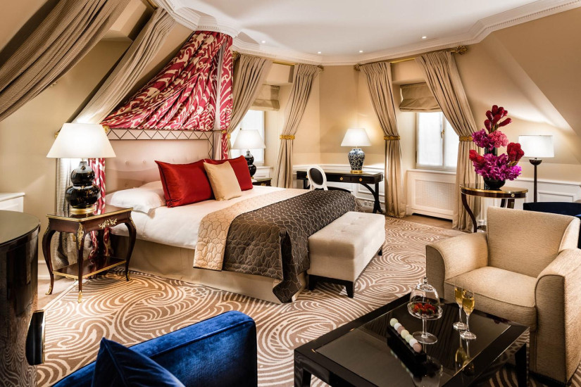 Оформление комнат рассчитано на самые разные вкусы: стиль Людовика XIV, Имперский стиль, Чиппендейл. Все предметы мебели произведены самыми эксклюзивными мебельными фабриками Франции, Италии и Великобритании. Многие из них любовно и с большим вкусом выбраны теперешней владелицей отеля. Особенное внимание при оформлении номеров уделено созданию простора и использованию природных материалов.