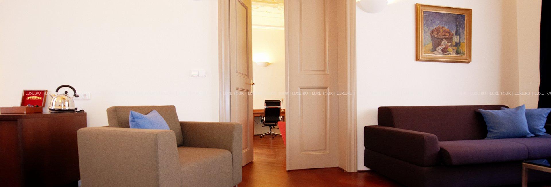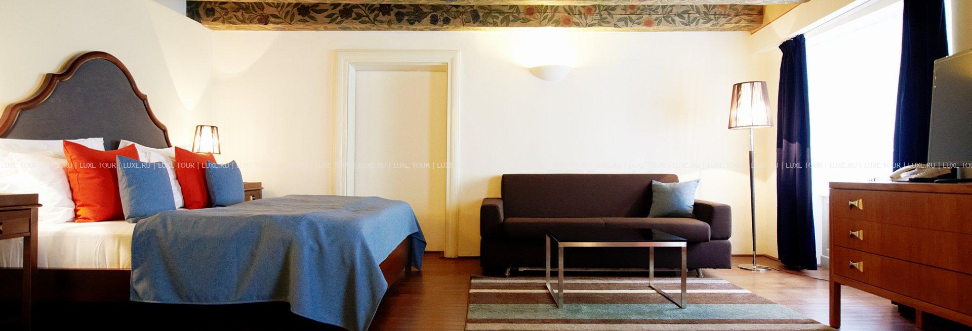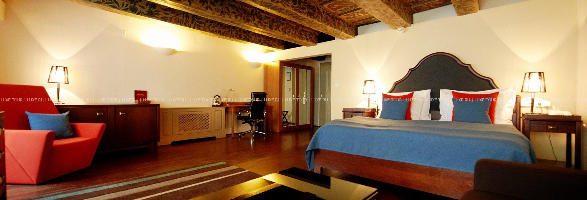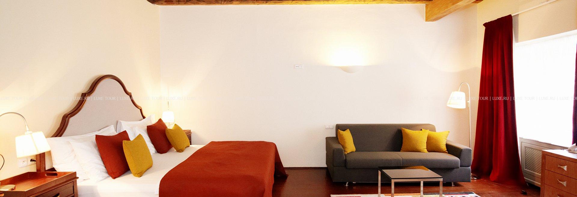 В оформлении великолепных номеров использована настоящая старинная мебель, в некоторых номерах присутствуют оригинальные фрески XIV века и декоративные деревянные потолки. Потолки отеля расписаны историческими фресками XIV, XVI и XVIII столетий.