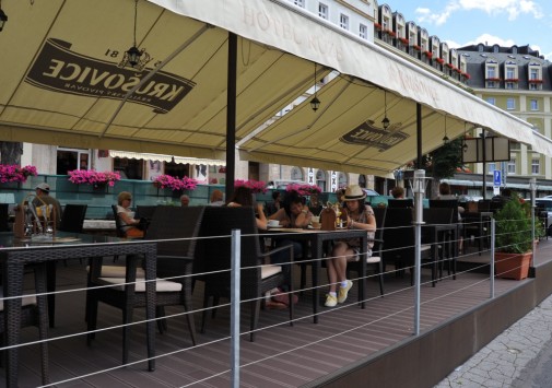 В теплое время года работает открытая терраса с изумительным видом на реку Влтава.