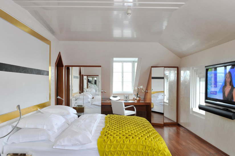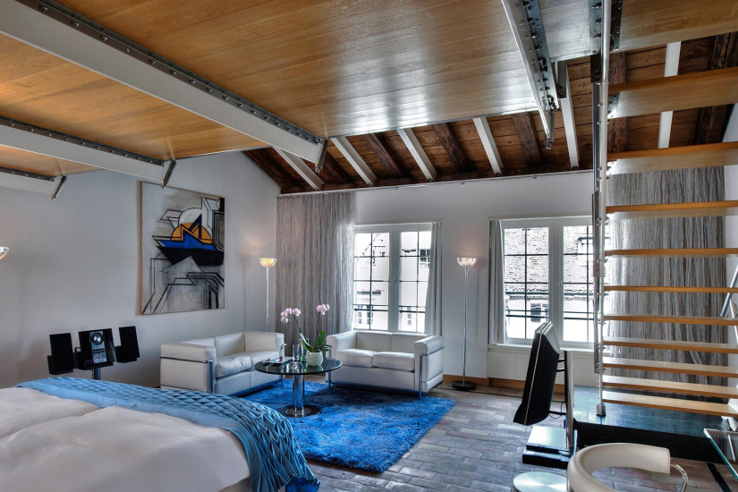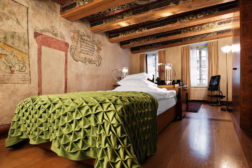 - Всего в отеле 49 номеров различных категорий, включая Superior Single Rooms, Design Double Rooms, Lifestyle Junior Suites, Lifestyle Suites, Family Suites, Loft, Two Bedroom Suite, Three Bedroom Suite и Penthouse. Номера размещены в семи зданиях. Некоторые имеют собственную террасу на крыше. Ни один номер не похож на другой: планировка, мебель, обстановка и общее настроение индивидуальны. Необыкновенный уют и особенную атмосферу утонченного стиля и возвышенного очарования создают предметы антиквариата и работы известных художников и скульпторов. Здесь представлены Августо Джакометти, Серж Полякофф, Макс Билл, Энди Уорхолл и София Тэубер-Арп, а полотна Роберта Раушенберга составляют важнейшую часть интерьера Penthouse.