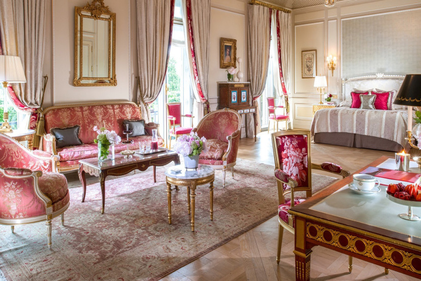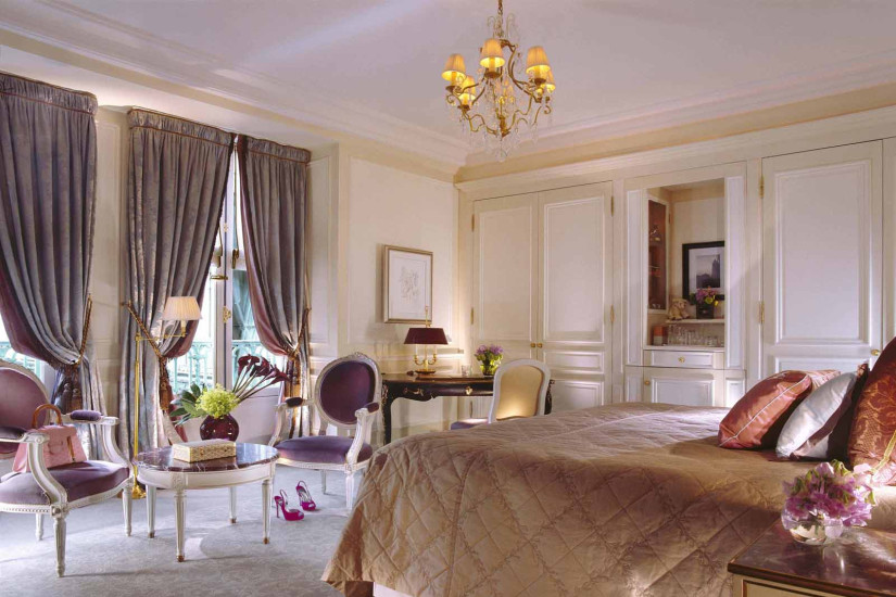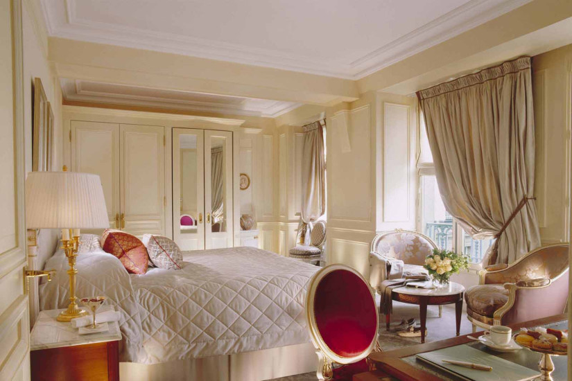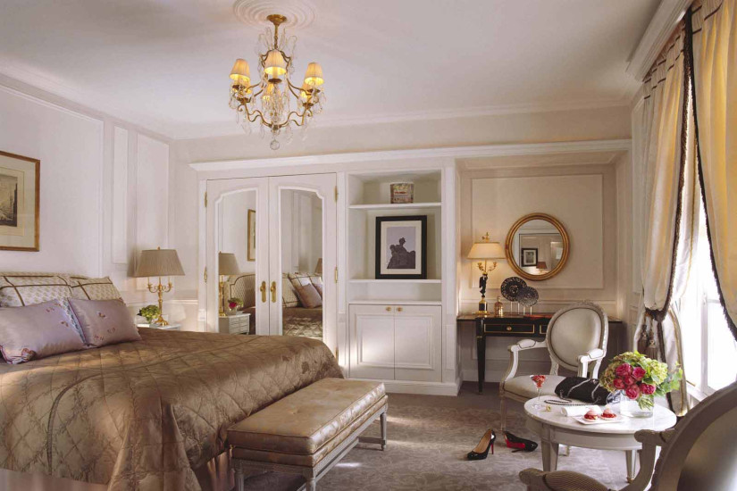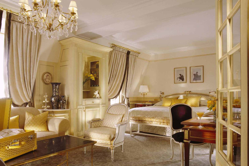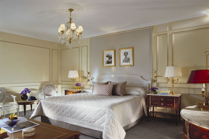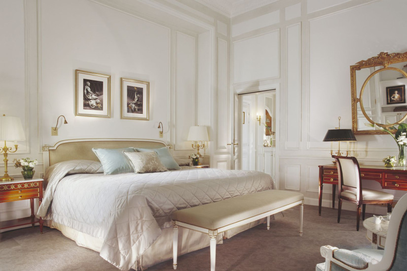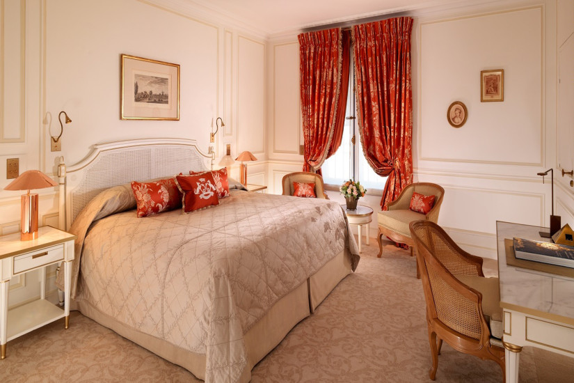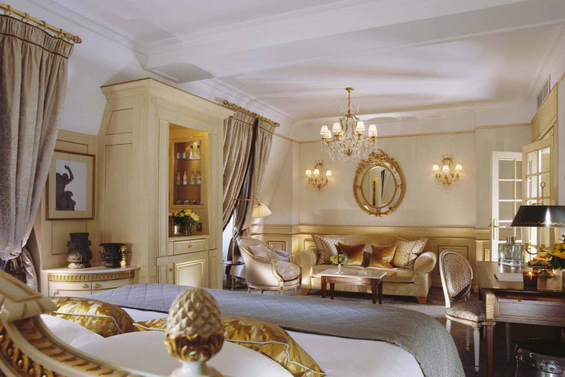 - 60 м2. Состоит из спальни с кроватью king-size или двумя кроватями twin, гостиной зоны, рабочей зоны, просторной гардеробной, прихожей и мраморной комнатой с ванной и душевой. Номер оформлен в классическом французском стиле эпохи Людовика XVI с изысканной мебелью и шикарными тканями, имеет вид на внутренний двор или улицу Rue du Mont Thabor.