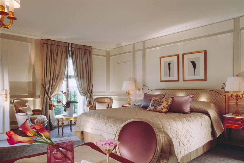 - 60 м2. Номер с высокими расписными вручную потолками, оформленный в стиле Людовика XVI, состоит из спальни с кроватью king-size или двумя кроватями twin, просторной гостиной зоны, ванной комнаты с ванной и отдельной душевой. Из номера открывается великолепный вид на на сад Тюильри и Париж.