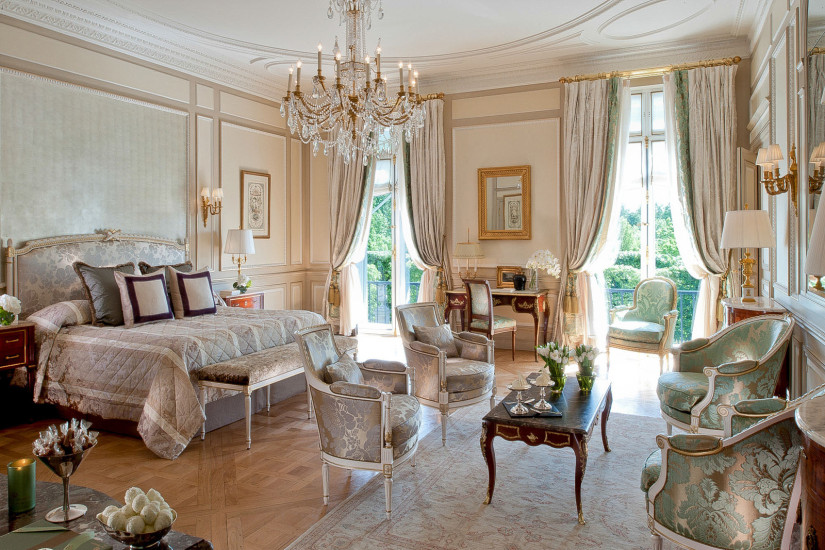- 160 м2. Состоит из спальни с кроватью king-size или двумя кроватями twin, прихожей, гостиной с обеденной зоной, мраморной ванной комнаты с ванной и душевой. Интерьеры номера выполнены в классическом французском стиле эпохи Людовика XVI с изысканной мебелью и шикарными тканями, имеет вид на сад Тюильри и Париж. Располагается на 2 этаже, имеется возможность присоединения до 3-х номеров, расположенных на этаже, что увеличивает площадь люкса максимум до 380 м2.