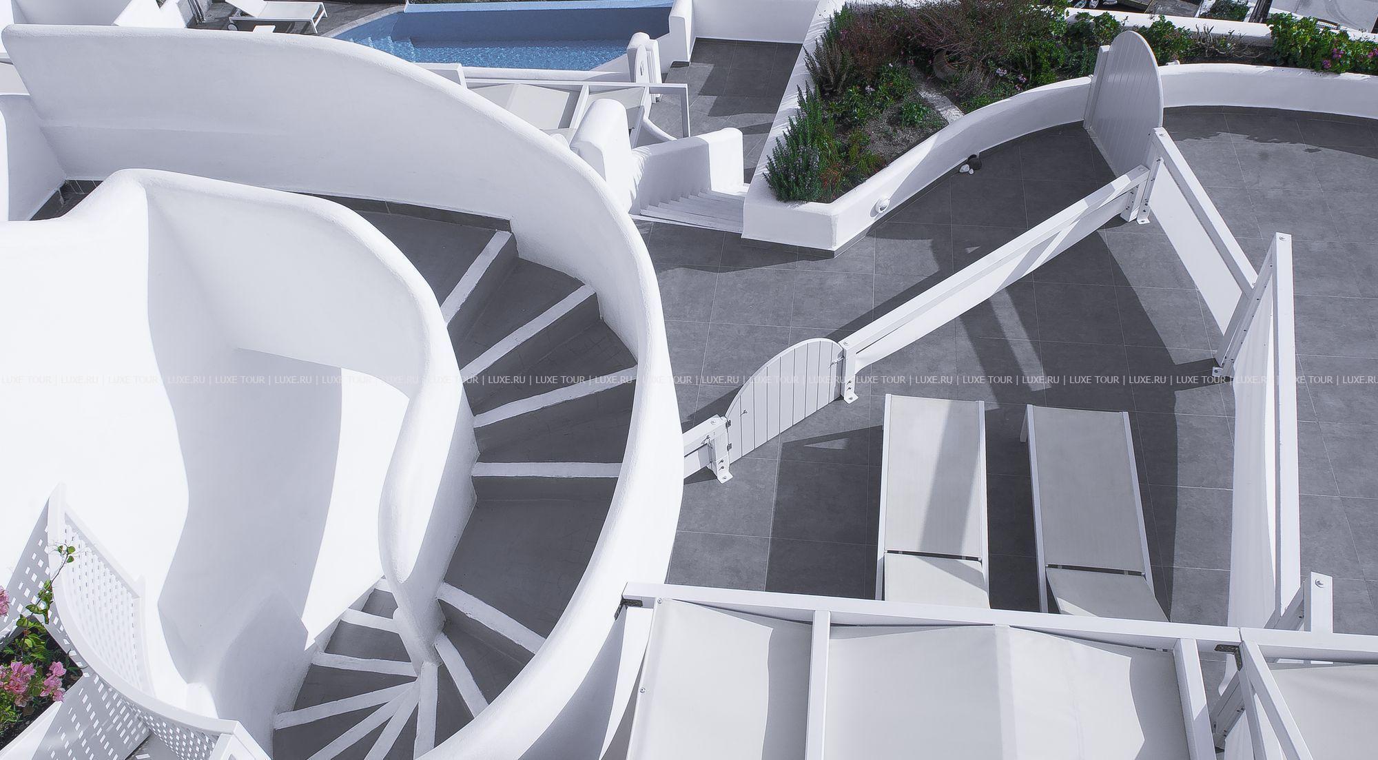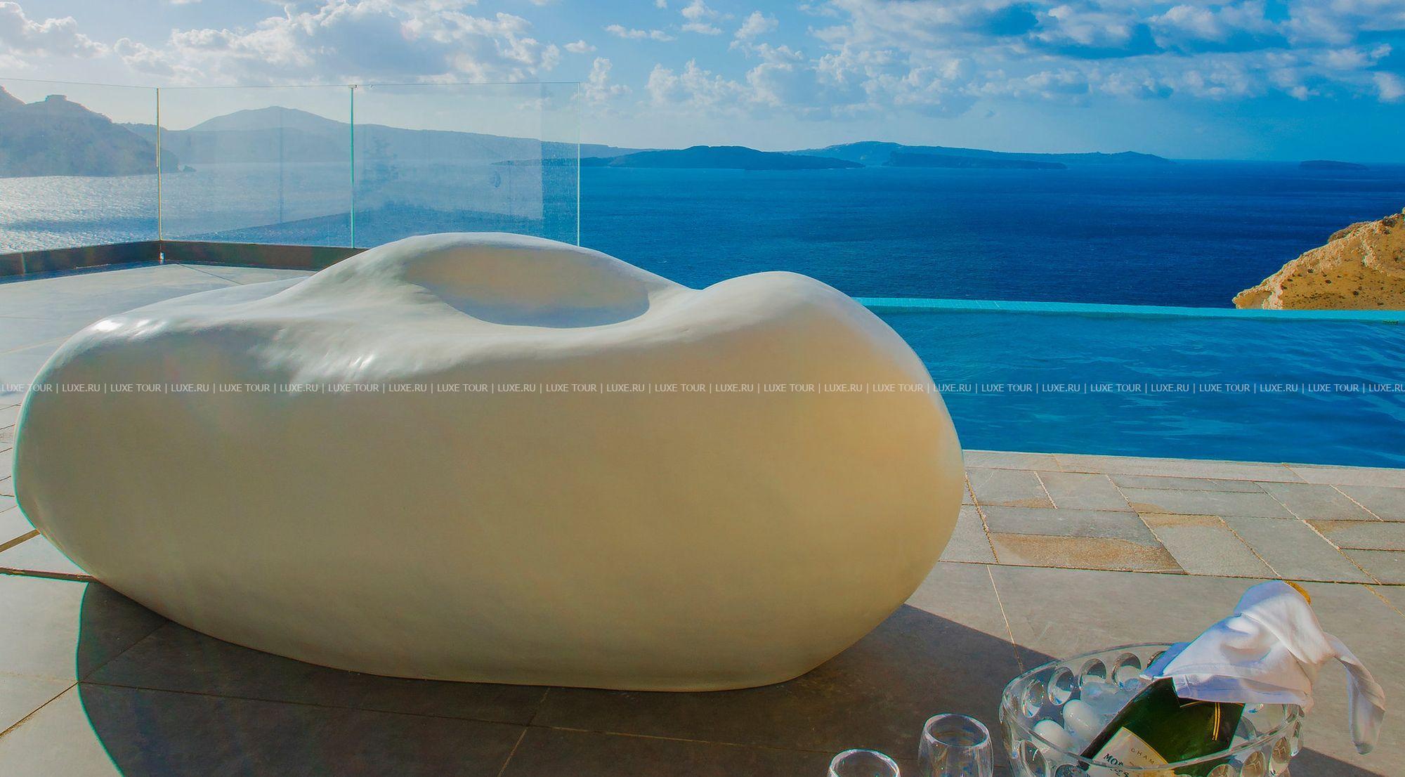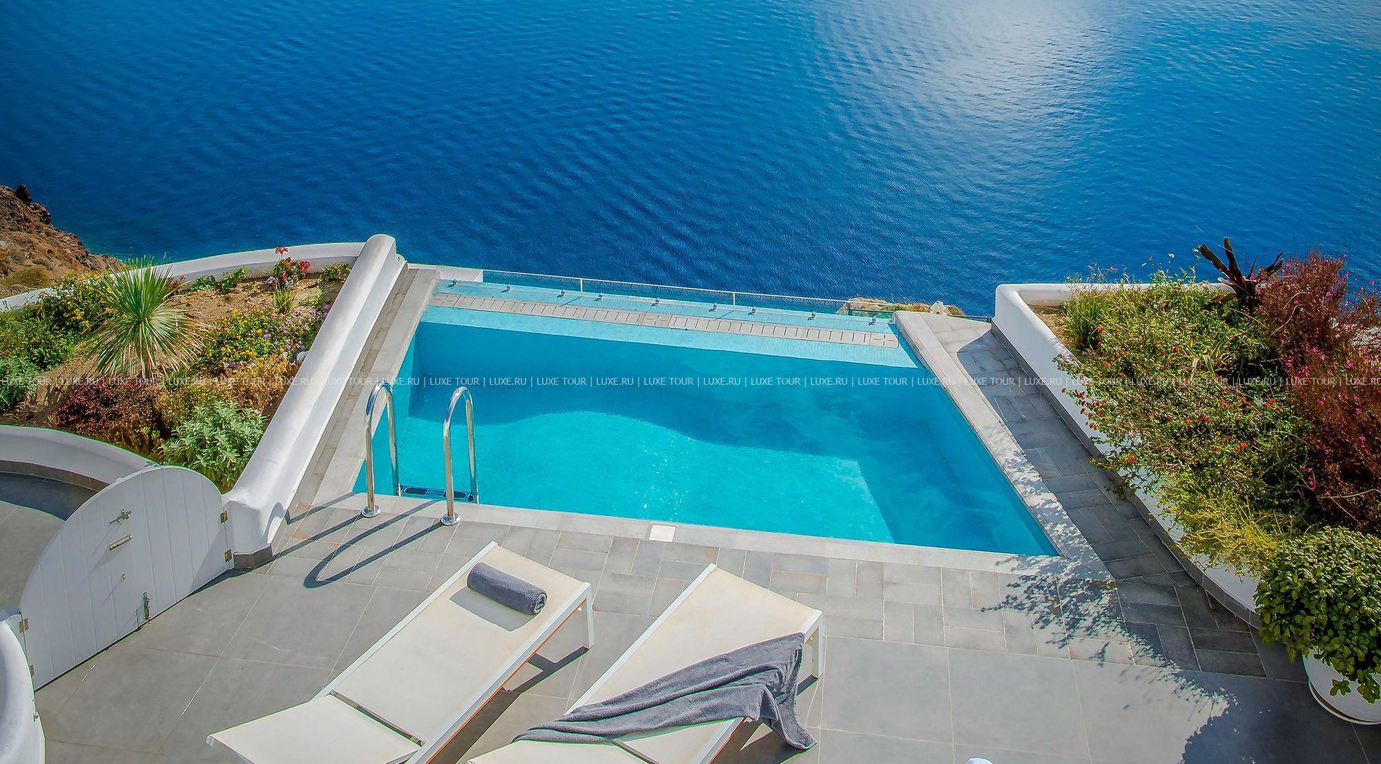 Santorini Secret Suites & Spa – фешенебельный бутик-отель, построенный на вершине скалы высотой 100 метров, откуда открывается сказочный вид на сверкающую бирюзу кальдеры, Эгейского моря и чарующие пейзажи местечка Ия с его церквушками под голубыми куполами. Отель идеально вписывается в ландшафты Санторини: белоснежные стены, солнечные террасы, архитектура, сочетающая традиции Кикладских островов и современный минимализм. К услугам гостей 17 роскошных сьютов и вилл – все с частными бассейнами или открытыми джакузи и потрясающим видом на море, ресторан с изысканной кухней, большой панорамный бассейн, спа-центр и другой сервис класса «люкс». Santorini Secret Suites & Spa Греция – настоящая «секретная» жемчужина Санторини.