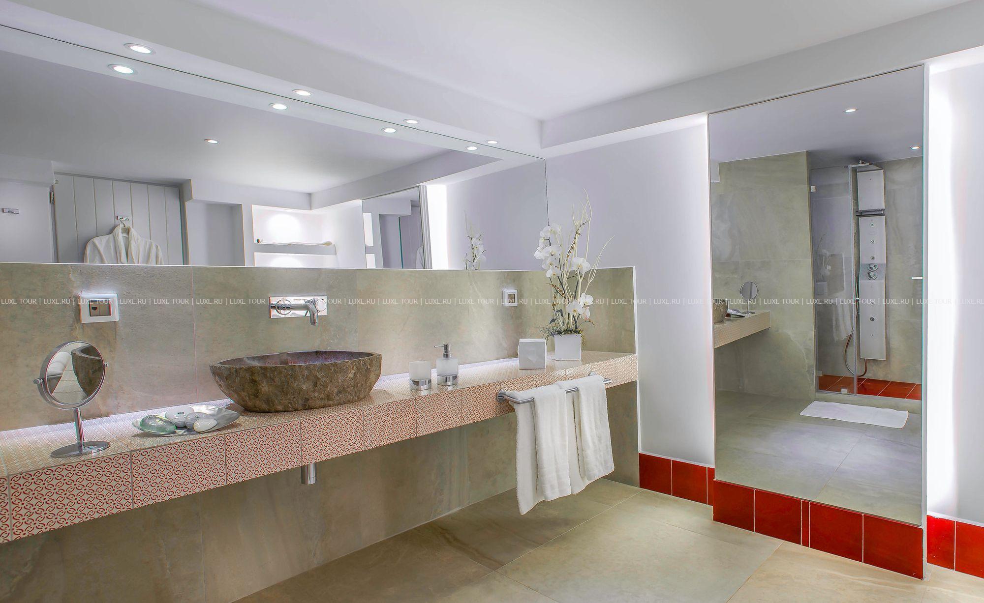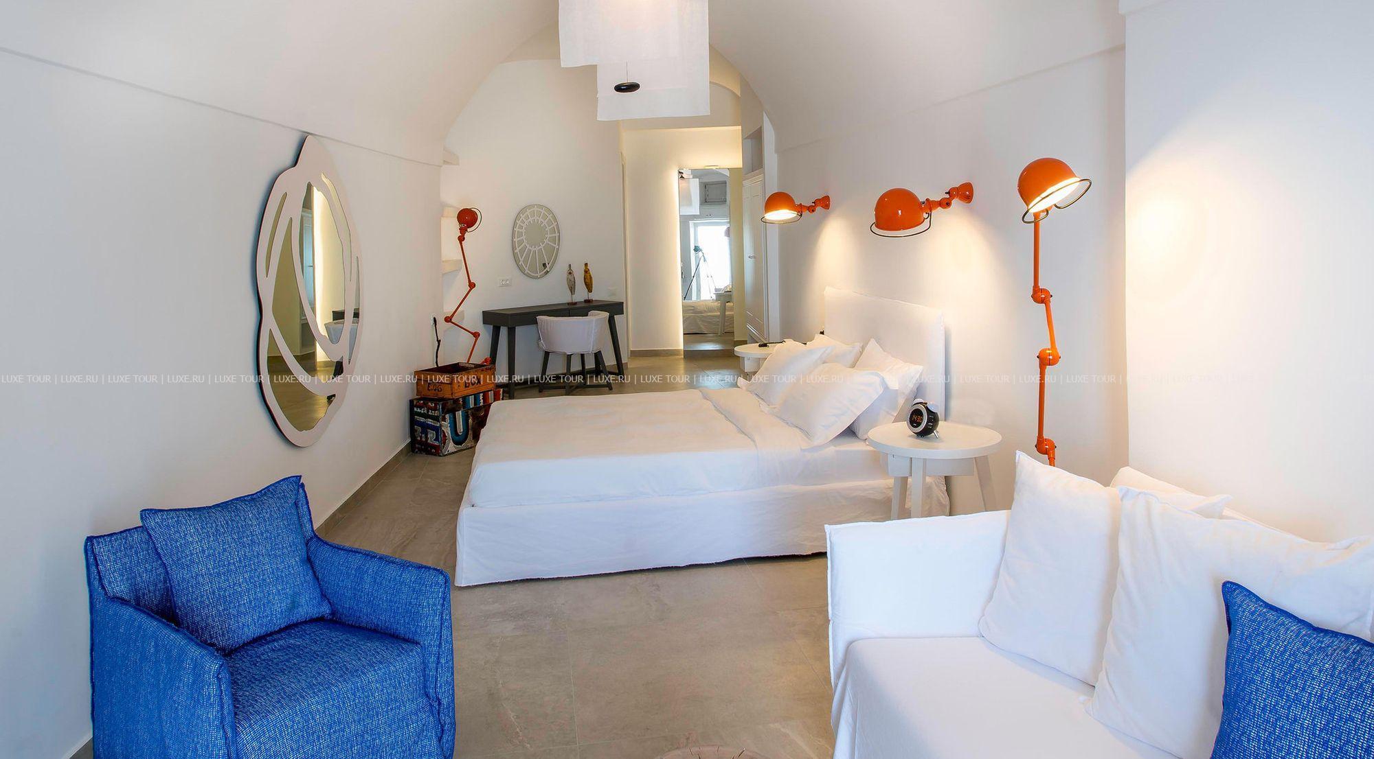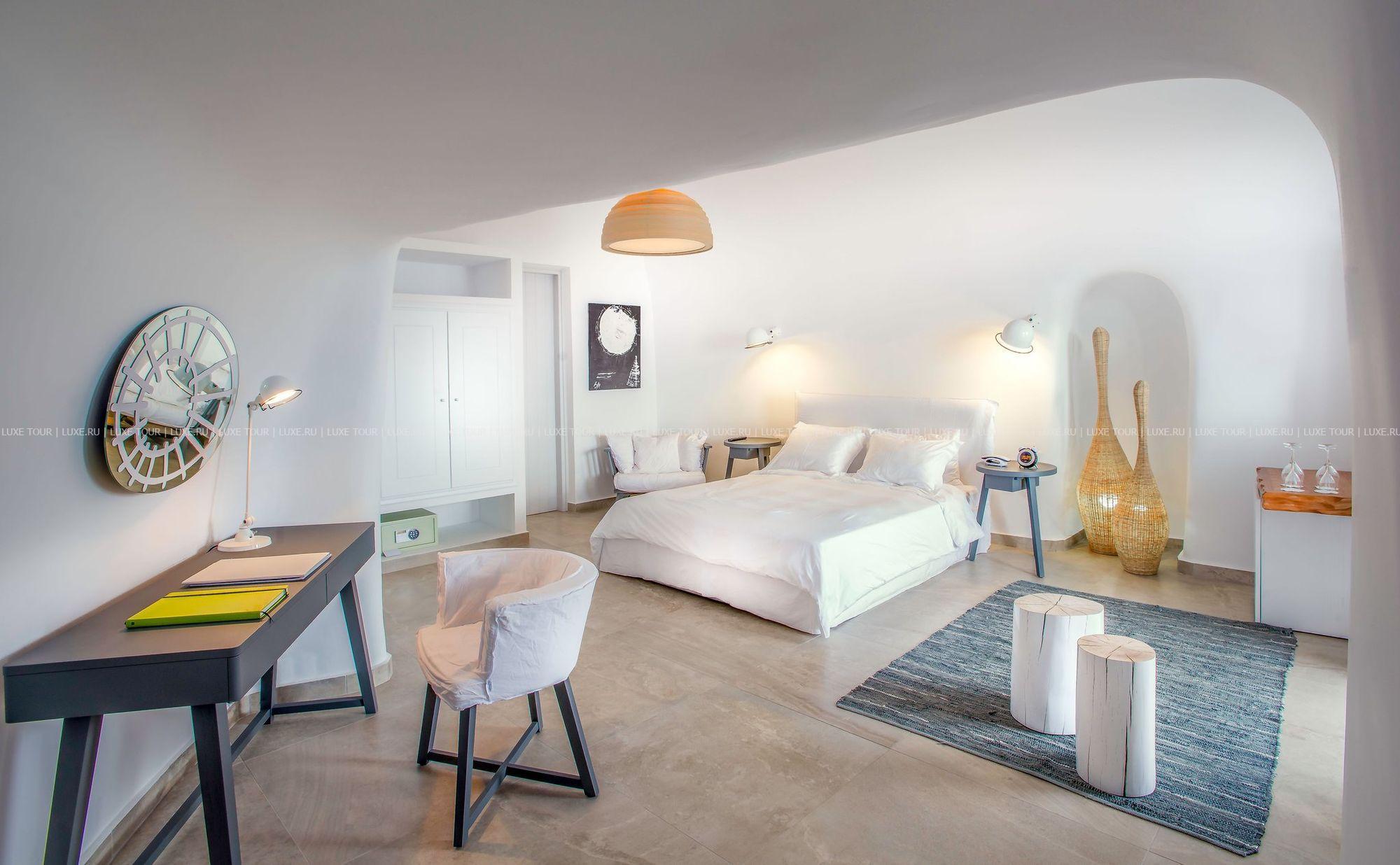 Santorini Secret Suites & Spa – фешенебельный бутик-отель, построенный на вершине скалы высотой 100 метров, откуда открывается сказочный вид на сверкающую бирюзу кальдеры, Эгейского моря и чарующие пейзажи местечка Ия с его церквушками под голубыми куполами. Отель идеально вписывается в ландшафты Санторини: белоснежные стены, солнечные террасы, архитектура, сочетающая традиции Кикладских островов и современный минимализм. К услугам гостей 17 роскошных сьютов и вилл – все с частными бассейнами или открытыми джакузи и потрясающим видом на море, ресторан с изысканной кухней, большой панорамный бассейн, спа-центр и другой сервис класса «люкс». Santorini Secret Suites & Spa Греция – настоящая «секретная» жемчужина Санторини.