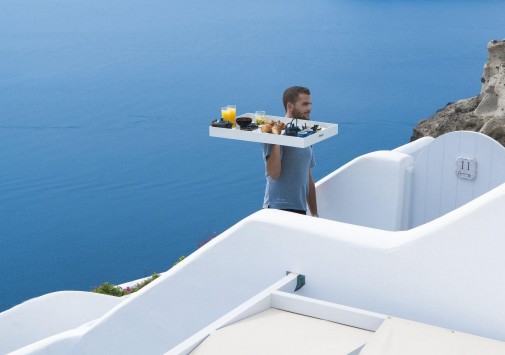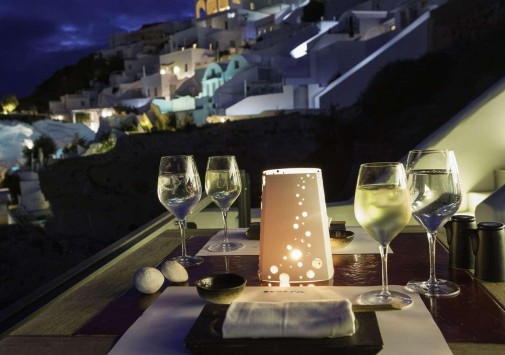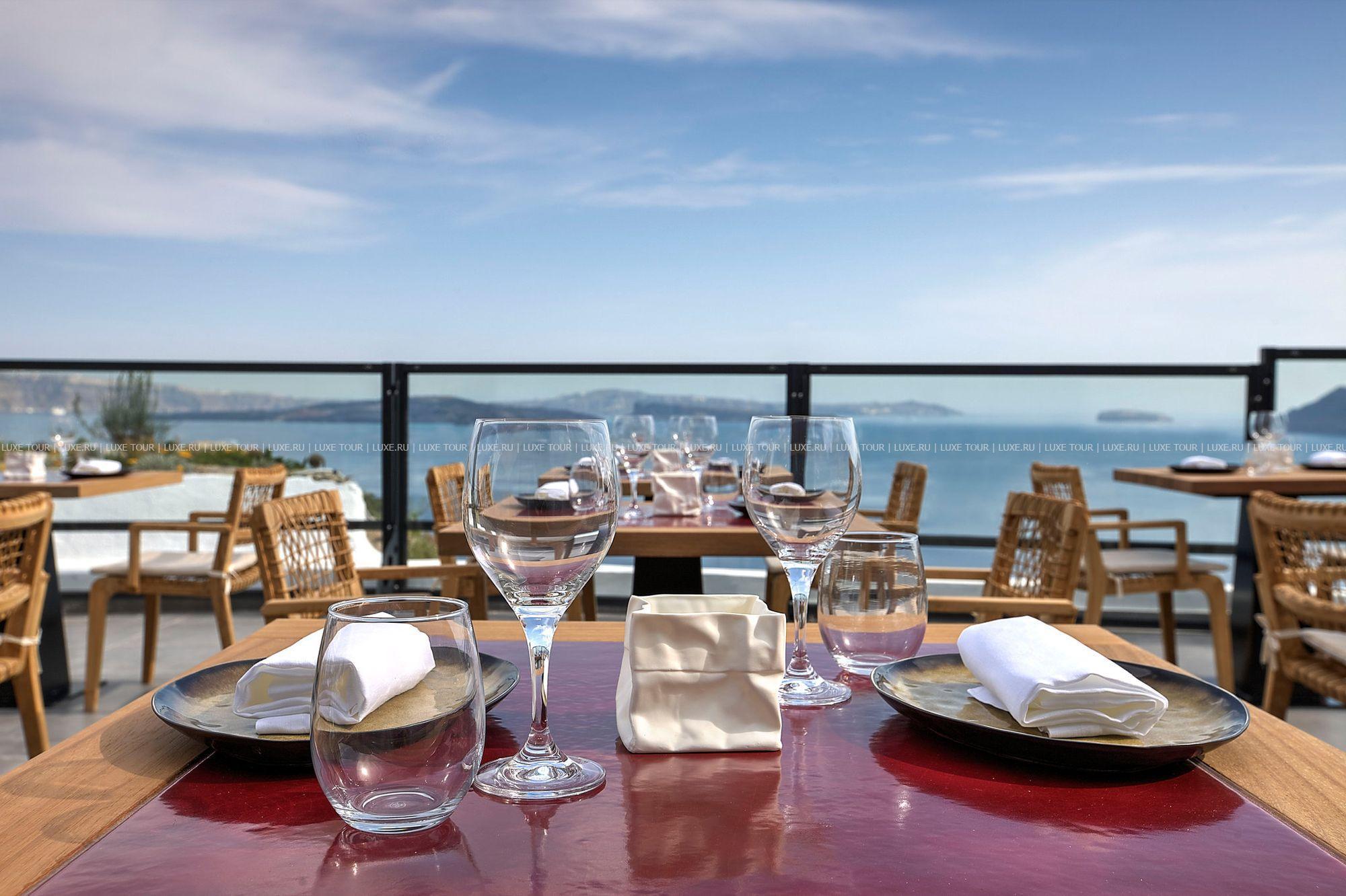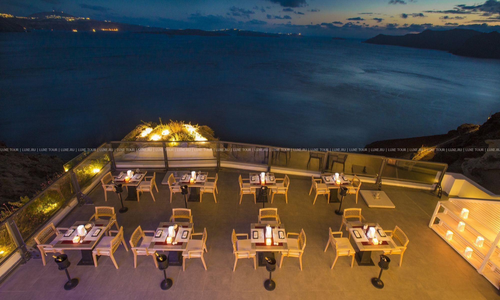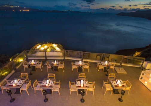 • Гастрономический ресторан с открытой террасой и потрясающим видом на кальдеру и Эгейское море предлагается деликатесы греческой, азиатской и средиземноморской кухни.