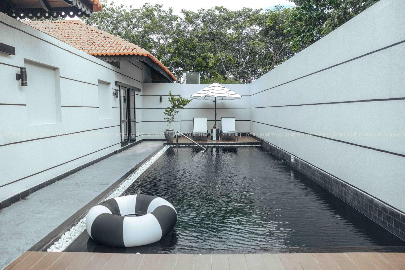 На территории отеля находится большой открытый бассейн.