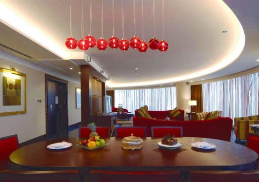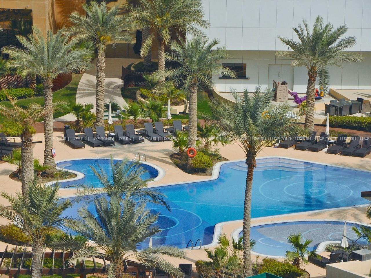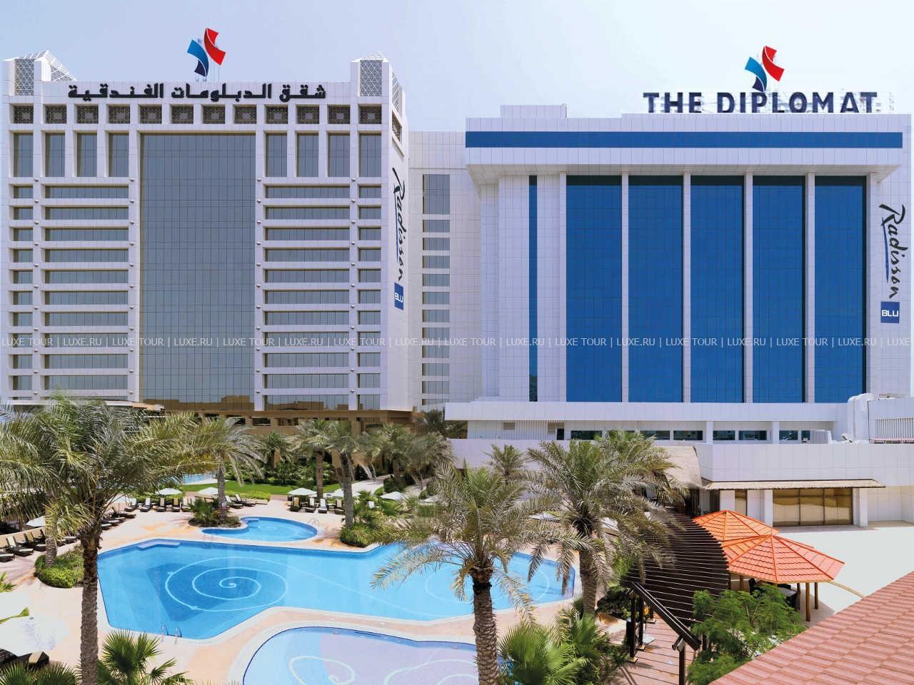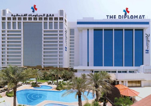в престижном дипломатическом районе курорта Манама, рядом с коммерческими и торговыми центрами Бахрейна и представляет собой современное белое 14-ти этажное здание. На крыше отеля расположен ресторан с панорамным видом на город, здесь проводятся тематические вечера и развлекательные программы.