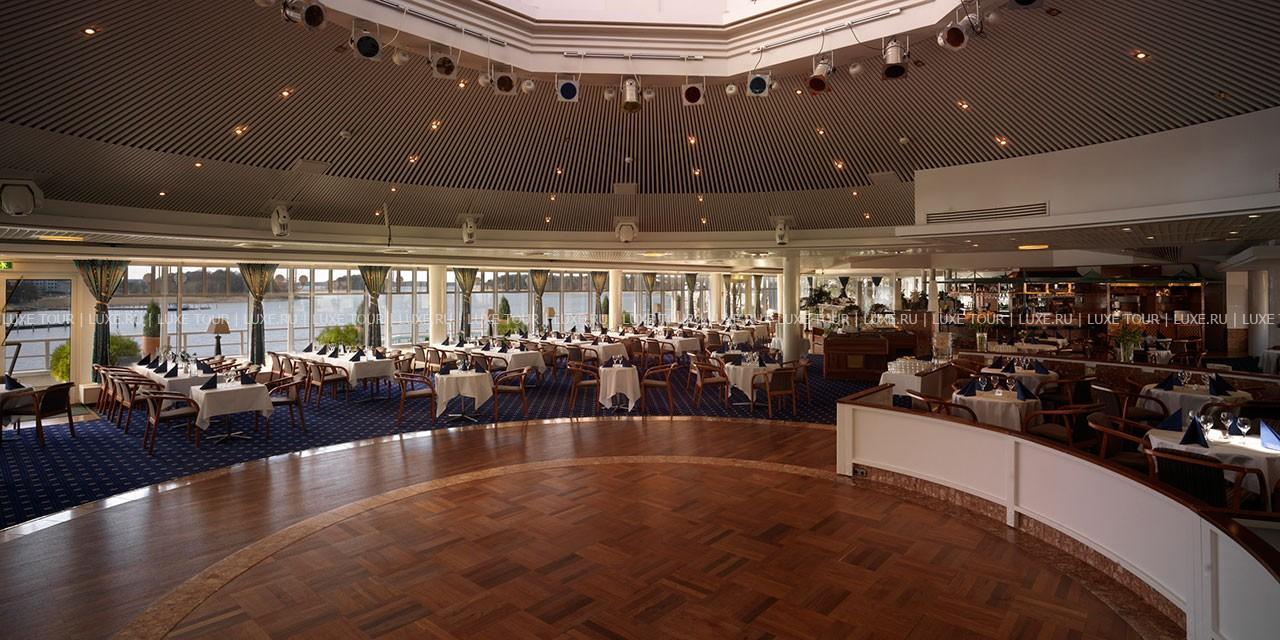 Ресторан яхты Sunborn Princess специализируется на блюдах международной кухни.