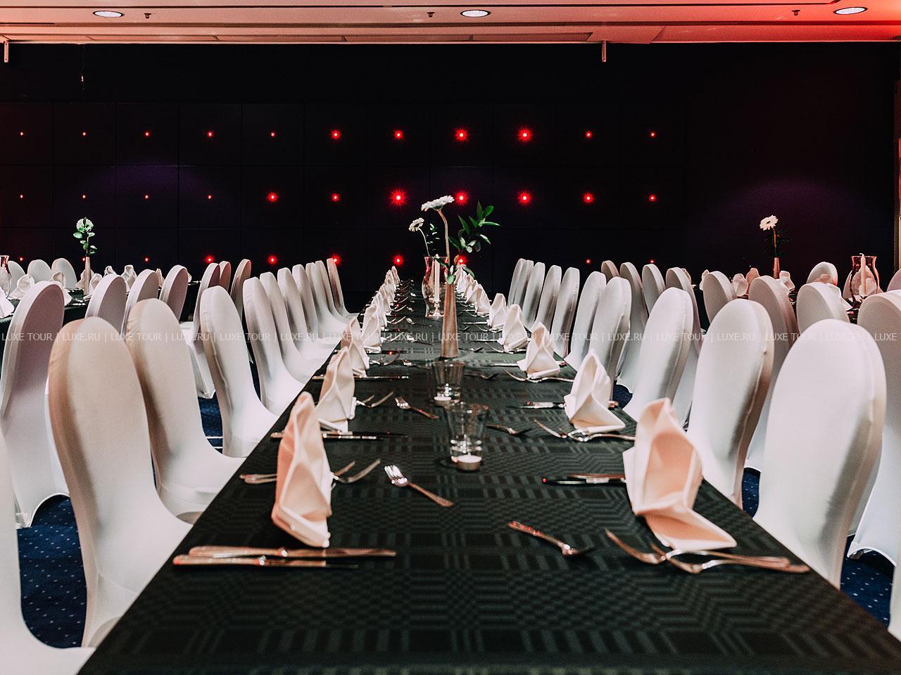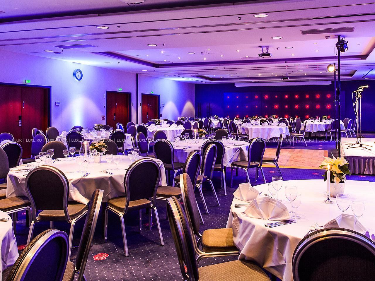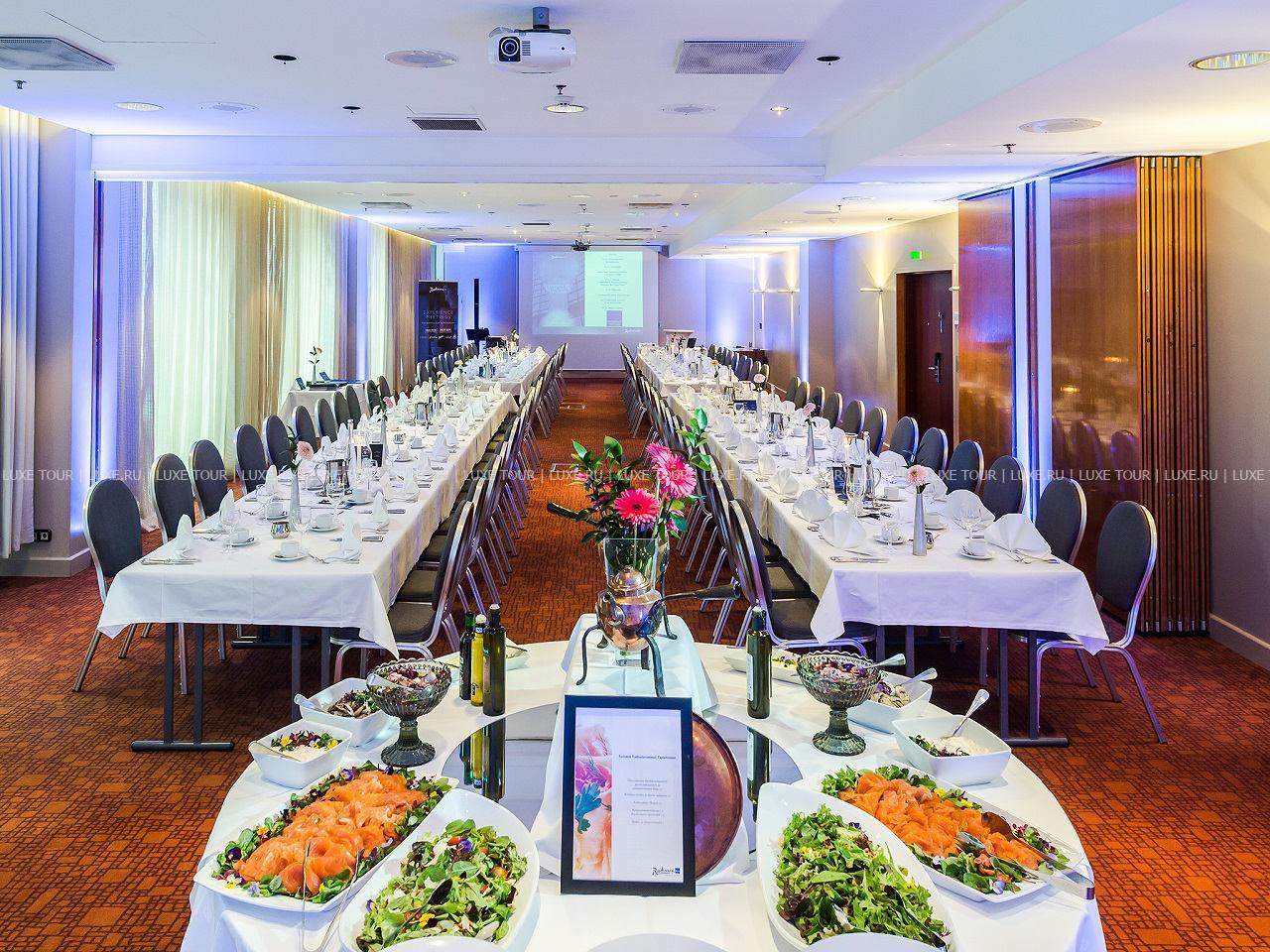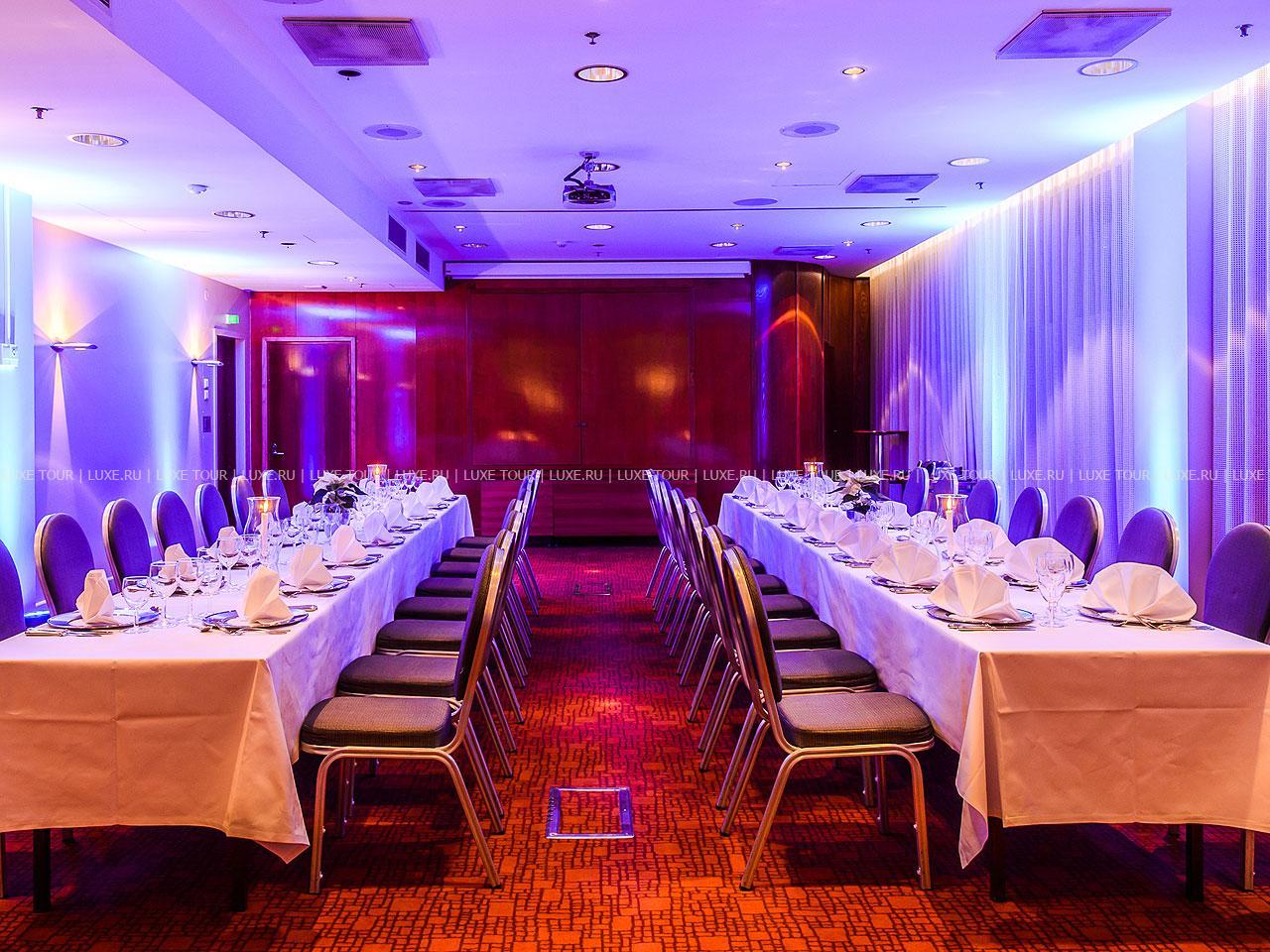 Для проведения встреч и конференций отель предлагает 13 залов общей площадью 653 кв. м, где можно принять до 400 гостей.