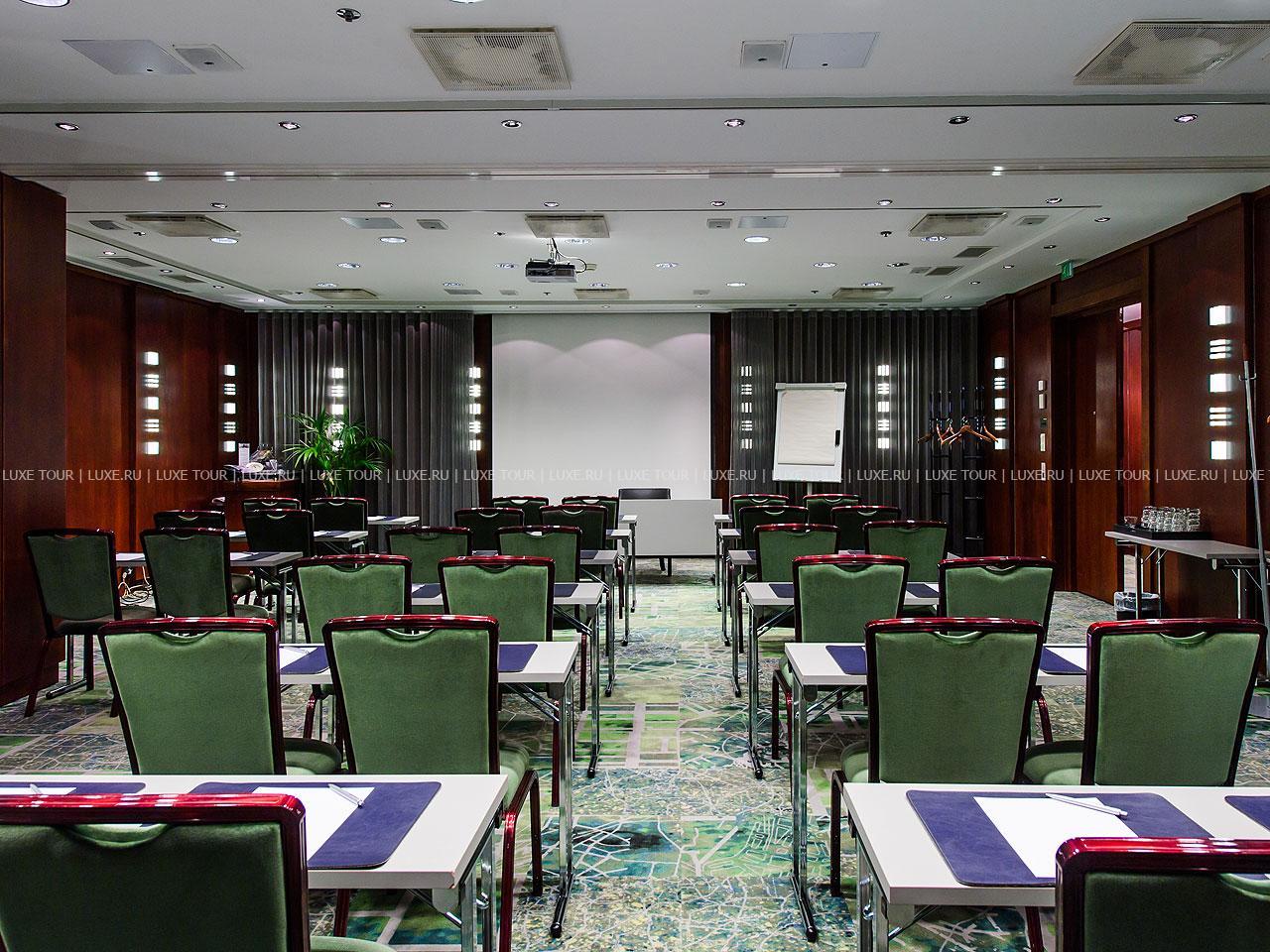 Для проведения встреч и конференций отель располагает 5 небольшими залами, самый просторный из которых рассчитан на 80 гостей. Все залы оснащены современной аудиовизуальной техникой и имеют доступ в Интернет.