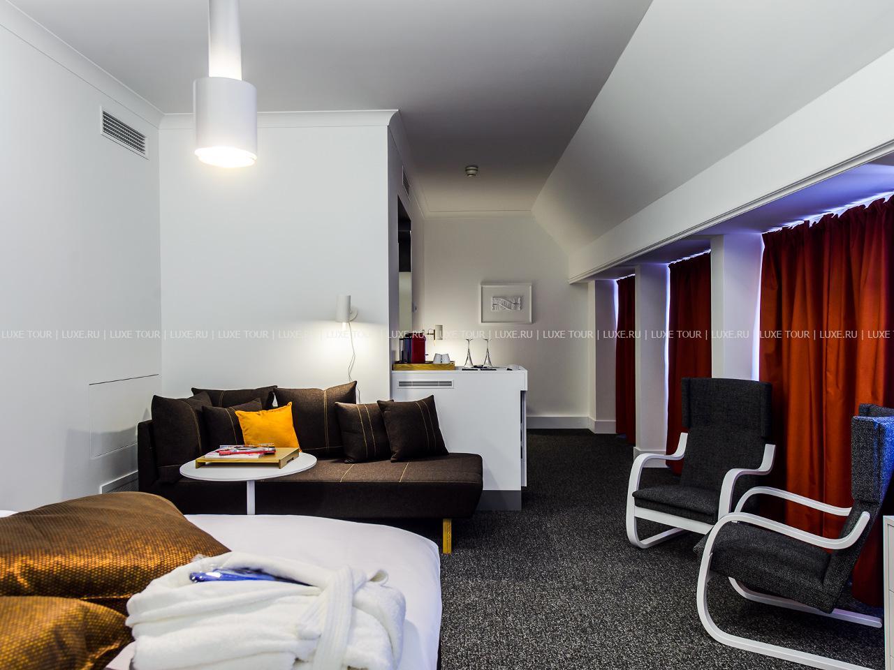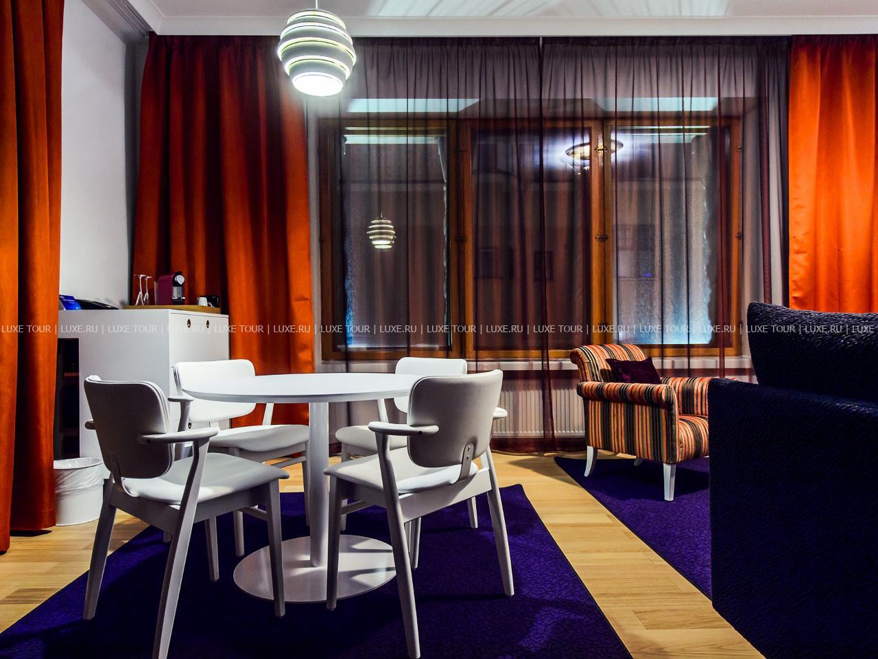 Эклектичная концепция находит свое отражение и в убранстве интерьеров 291 номера, которые оформлены в классическом, итальянском или скандинавском стилях. В оформлении некоторых номеров также приняли участие многие известные финские дизайнеры. Бережно сохраняя свое историческое наследие, отель, тем не менее, идет в ногу со временем, постоянно развиваясь и совершенствуя комплекс услуг. К услугам гостей здесь: сауны и тренажерный зал, а также ресторан и бар.
