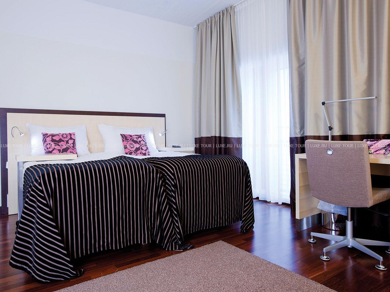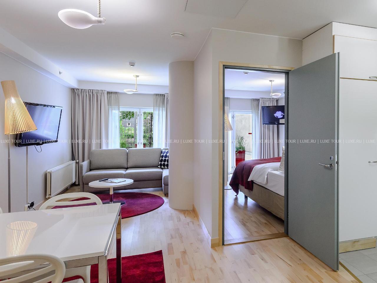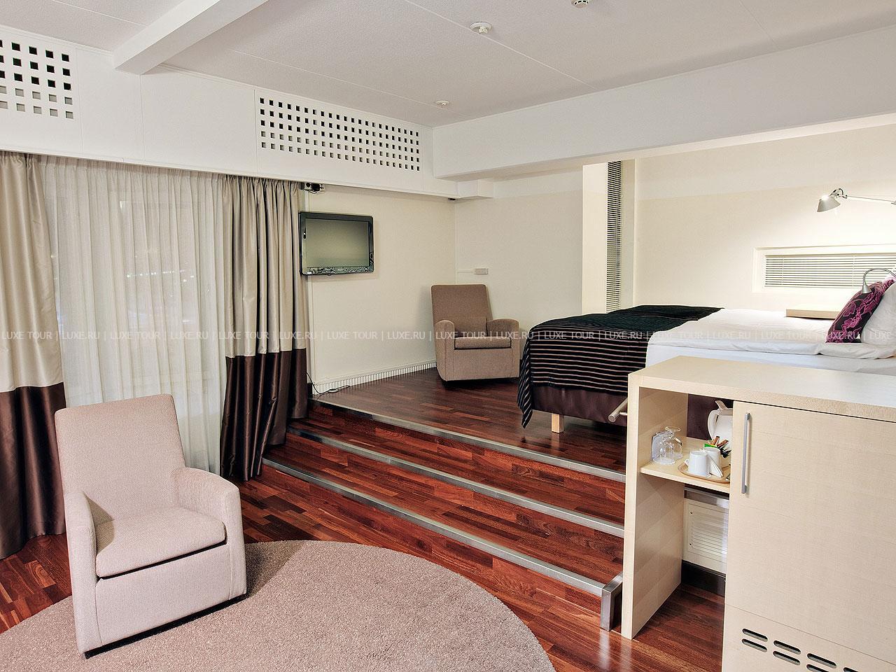 Из многих номеров открываются удивительные виды на финский залив. Безупречность с точки зрения экологии, фантастическая архитектура и продуманный дизайн дополнены 2 ресторанами и баром, где гостей ждут различные яства итальянской и европейской кухни. Также в комплекс отеля входят 2 сауны и детский клуб.