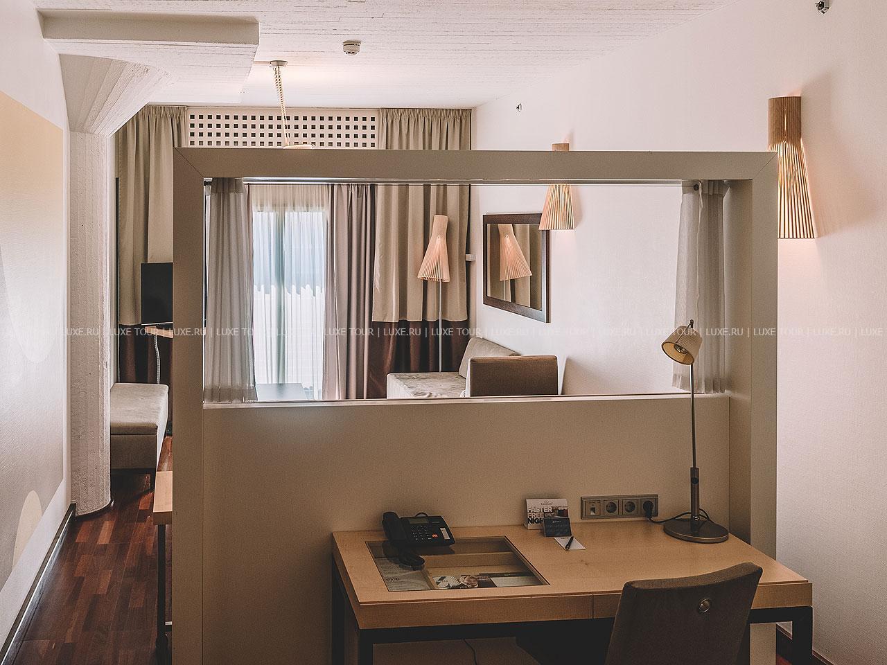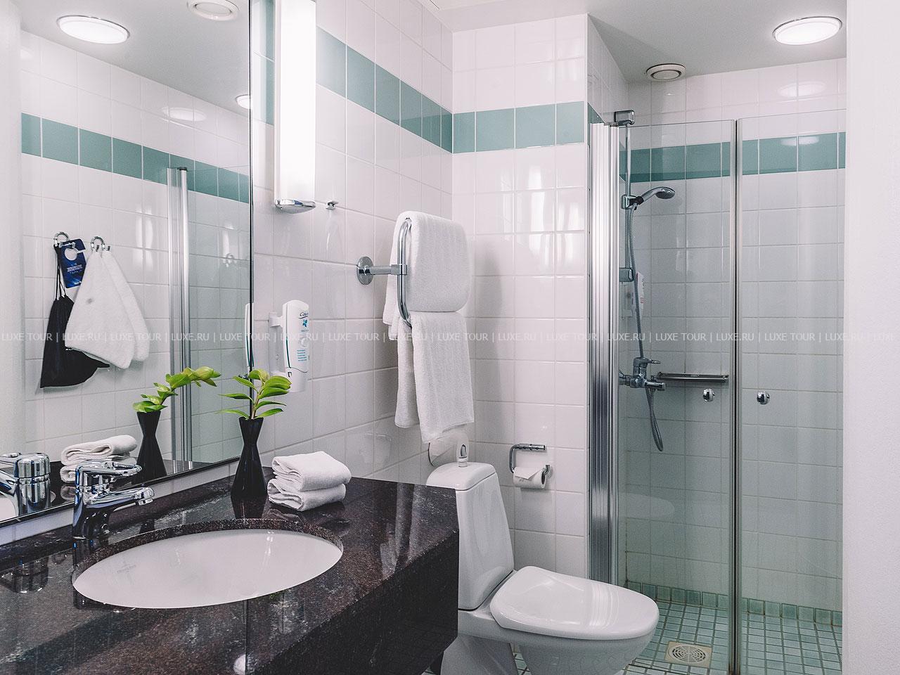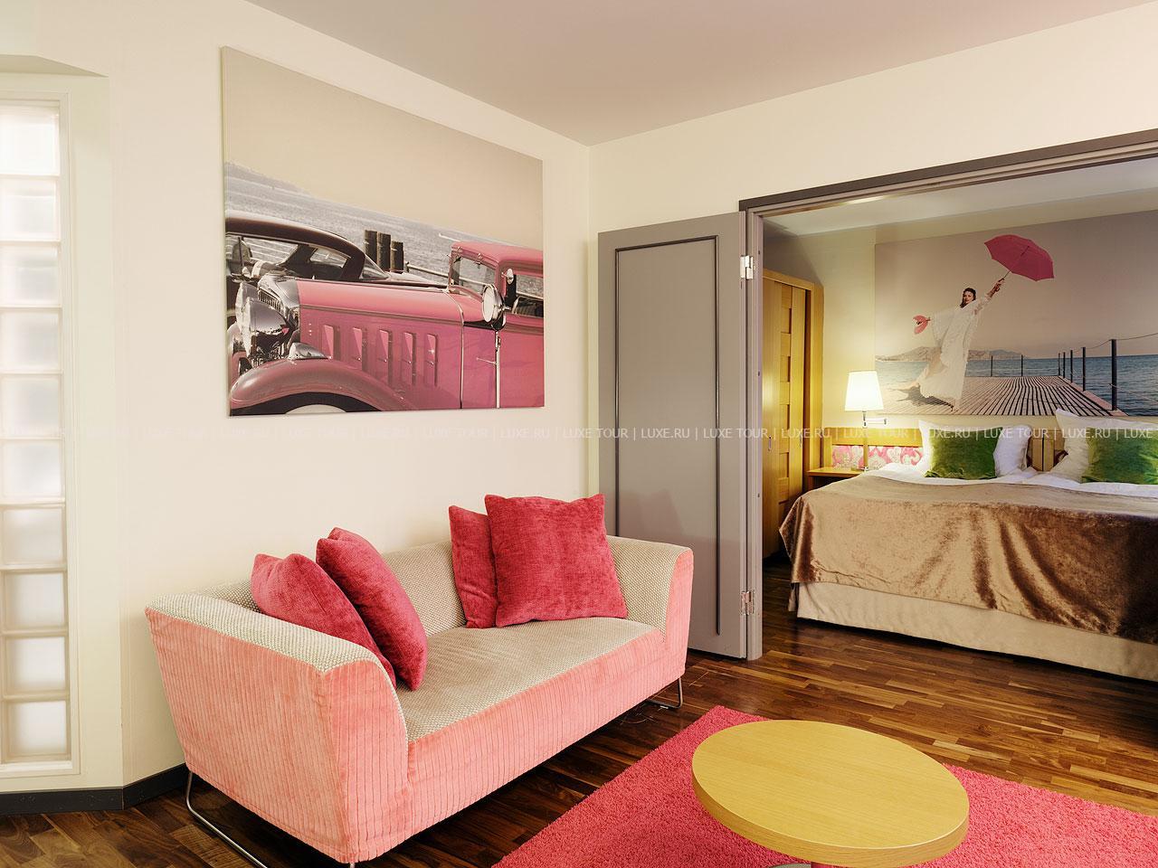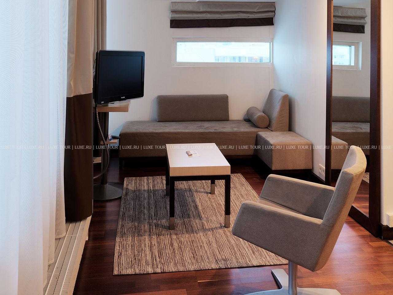 Из многих номеров открываются удивительные виды на финский залив. Безупречность с точки зрения экологии, фантастическая архитектура и продуманный дизайн дополнены 2 ресторанами и баром, где гостей ждут различные яства итальянской и европейской кухни. Также в комплекс отеля входят 2 сауны и детский клуб.
