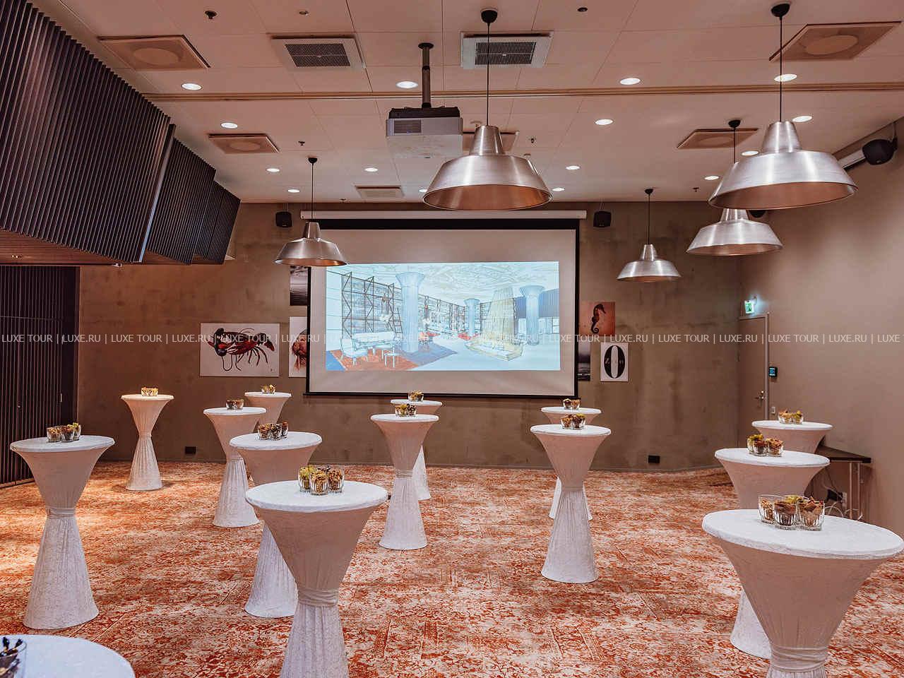Для проведения встреч и конференций отель располагает 12 залами, самый большой из которых может принять до 150 гостей.