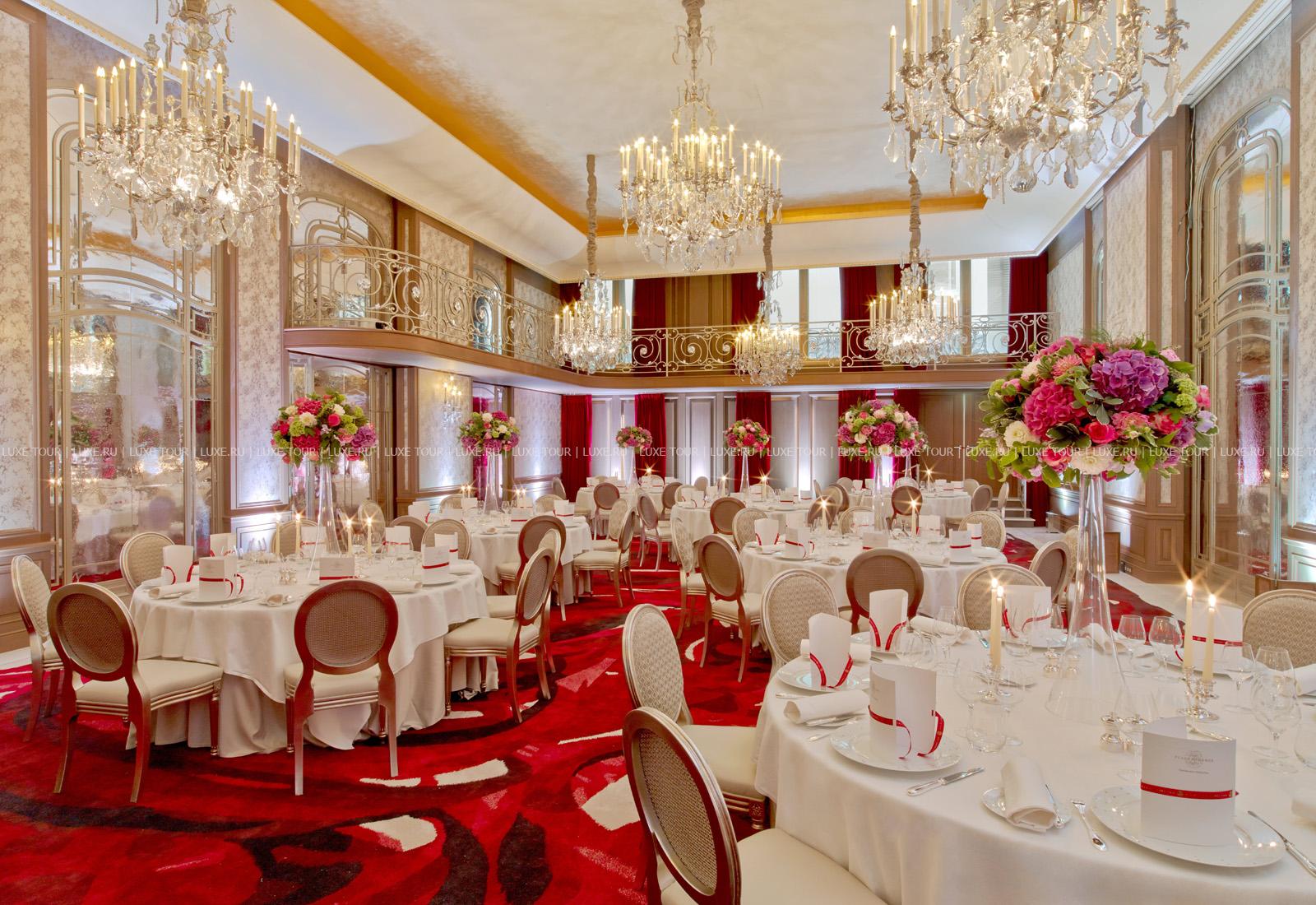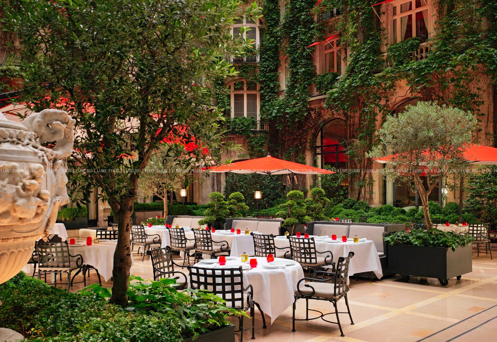 • Ресторан несравненного шеф-повара отеля Алена Дюкасса (Alain Ducasse) Au Plaza Athénée, отмеченный 3 звездами в гиде Мишлен, предлагает разнообразные блюда французской кухни. Ресторан открыт на обеды по четвергам и пятницам, на ужин с понедельника по пятницу. Dress code: костюм с галстуком.
