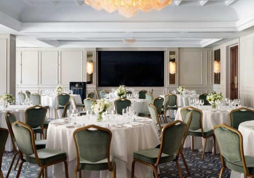 Элегантный ресторан The Russell Room представляет сочетание блюд французской, ирландской и международной кухонь.