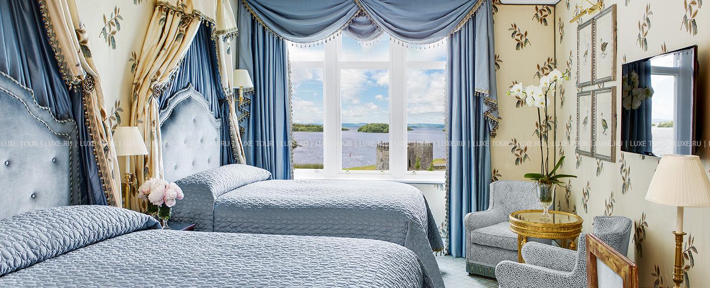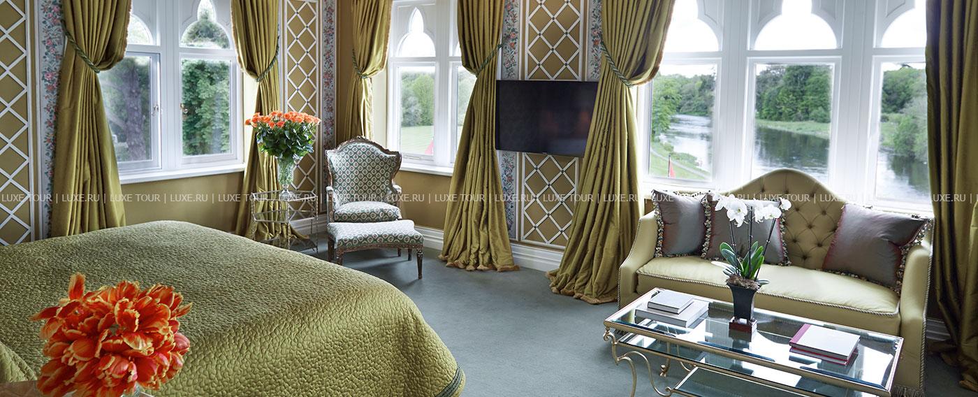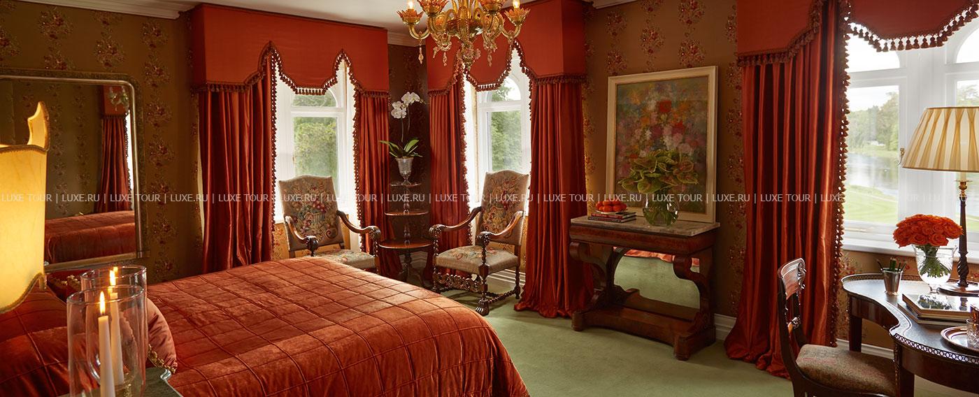В комфортабельных номерах – индивидуальные классические интерьеры, воссоздающие атмосферу аристократичного дома прошлых веков – массивные камины, красиво драпированные шторы и покрывала из декоративных тканей изысканных расцветок, дорогие ковры, антикварная мебель, предметы старины и подлинные живописные полотна. Рестораны и бары отеля – настоящее удовольствие для гурманов: в элегантном ресторане George V предлагаются изысканные блюда современной ирландской и международной кухонь.