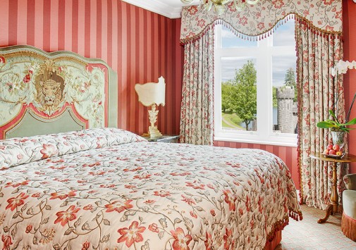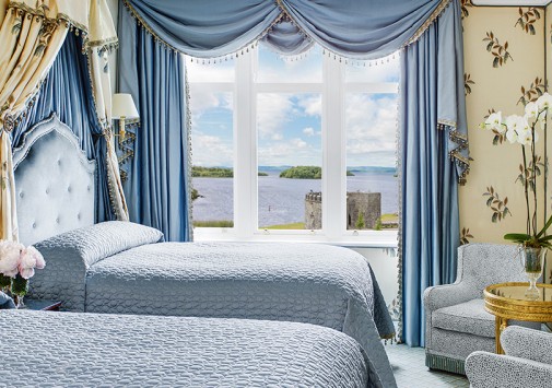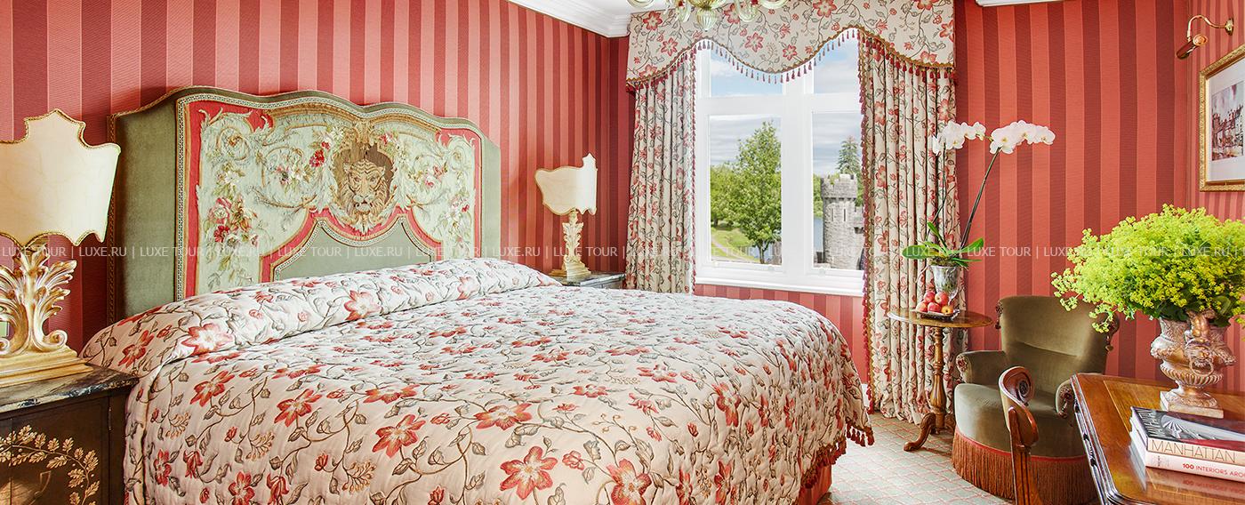 На берегу сверкающего голубой гладью озера Корриб, среди изумрудных лугов, живописных холмов и буйных лесов графства Мэйо расположился величественный замок Ashford, похожий на ожившую сказочную иллюстрацию, неподвластную времени. Построенный в 1228 году замок почти за восемь столетий становился собственностью многих знатных владельцев, включая лорда Ardilaun и семью Guinness, и, наконец, в 1939 году здесь открылся фешенебельный отель. С тех пор Ashford посетили многие мировые знаменитости, включая принца Уэльского, Рональда Рейгана, Барбару Стрейзанд, Пирса Броснана, Джека Николсона, Шарон Стоун и многих других, а в 1951 году Джоном Фордом в замке был снят известный фильм «Тихий человек ». Теперь отель является одним из лучших в Ирландии и входит в число 50 лучших отелей Европы. Внутреннее убранство Ashford поражает сочетанием великолепия и изысканного уюта.