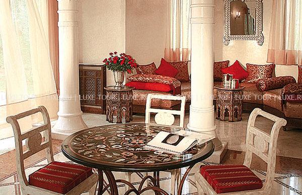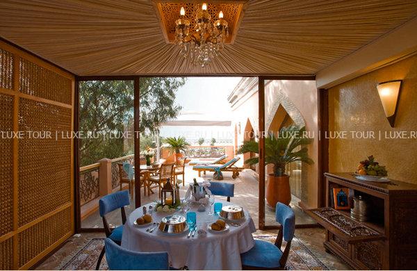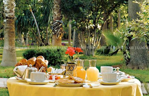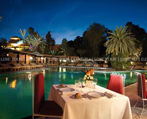 В ресторане с панорамной террасой La Cour des Lions, откуда открывается вид на пышные сады и Атласские горы, предложена марокканская кухня.