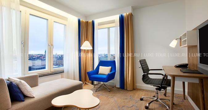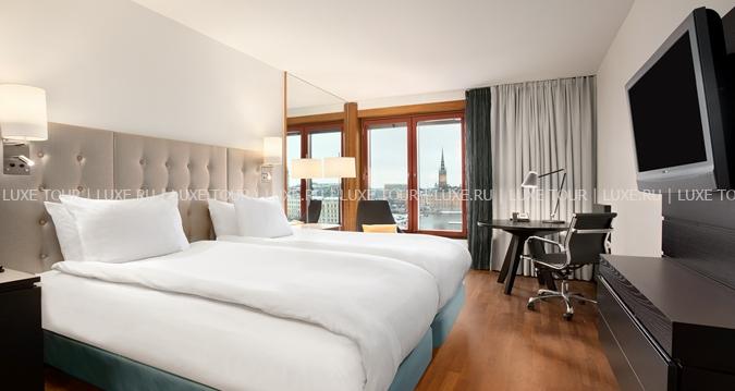 Отель, входящий в именитую цепочку Hilton Hotels, расположен на улице Guldgränd в центральной части города в 40 км от международного аэропорта Arlanda. Желтоватое здание, спроектированное известным шведским архитектором Gert Wingard, очаровывает гостей не только элегантным фасадом и грациозным изяществом линий, но и удивительной атмосферой красоты и уюта. Здесь вы сможете ощутить невероятный шарм, присущий городу, благодаря которому Стокгольм часто называют «северной Венецией».