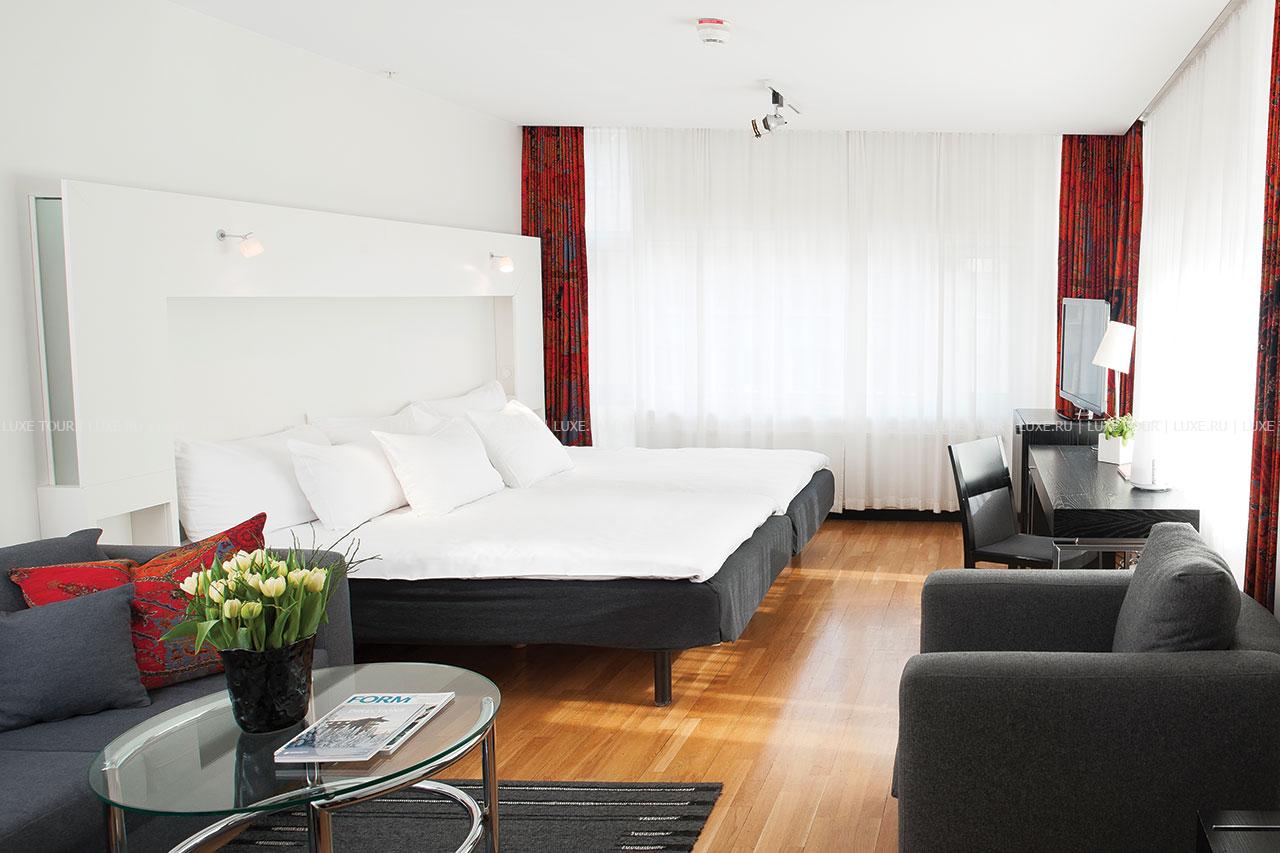 Отель Nordic Light Hotel расположен в самом сердце города в двух шагах от основных достопримечательностей шведской столицы, магазинов, театров и музеев, а также офисов крупнейших фирм. Идеальное расположение составляет лишь малую частицу в притягательном образе гостиницы, входящей в знаменитую цепочку Design Hotels. Как и все отели этой группы, Nordic Light Hotel построен вокруг уникальной концепции, которой подчинены в равной степени экстерьер и убранство номеров и холлов. Архитекторы Jan Süder и Lars Pihl, выбирая тему для своего детища, остановились на элементе, прежде всего ассоциирующемся со Скандинавией – светом.