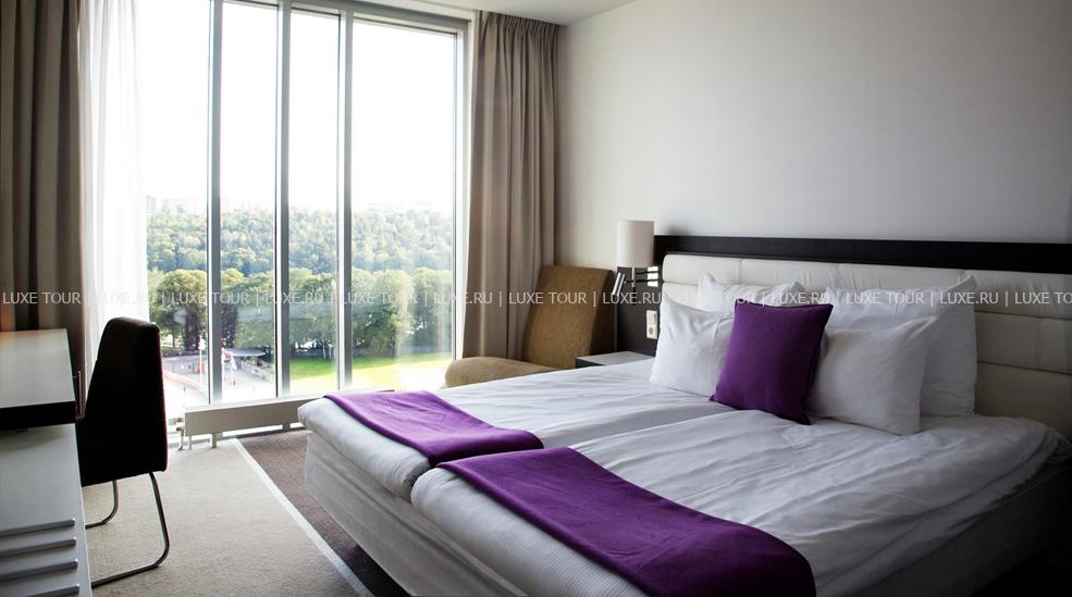 Черты, объединяющие дизайн интерьеров – контрастные цвета, подчеркнутое ощущение простора и света, оттеняющее темную основу – явственно проявляются и в убранстве номеров, где светлые тона составляют одно целое с фрагментами из темного дерева. Интересные находки дизайнеров дополнены предметами современного скандинавского искусства, которые вносят в убранство публичных зон гостиницы, баров, ресторана и номеров определенный элемент загадочности и необычности. Богатство дизайнерской мысли, разнообразие интересных работ и детальная проработка интерьеров заслужили гостинице славу «первого отеля искусств» в Стокгольме. Здесь гостей также ждут удивительные сады, ресторан, 3 бара и зона релаксации.