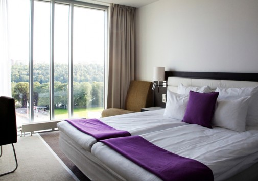 Отель расположен на улице Ringvägen недалеко от центральной части города. Эффектное здание гостиницы возвышается рядом с автострадой Söderleden, одной из наиболее значительных трасс, ведущих в Стокгольм. Подобное местоположение, помимо очевидных достоинств (таких, как близость к историческим местам города, торговому и деловому центру), существенным образом дополняет внешний образ отеля. Если взглянуть на здание с разных сторон, то каждая его часть предстает несколько в ином свете, гармонируя с окружающим городским ландшафтом и пышной растительностью: внушительный колосс из стекла и стали горделиво нависает над гудящим проспектом Ringvägen; с запада – выходящий на изумрудный парк Eriksdalslunden дугообразный фасад будто следует за виляющими аллеями; полностью застекленная южная сторона искусно соединяет внутреннее и внешнее пространство, вписывая гостиницу в городской пейзаж.