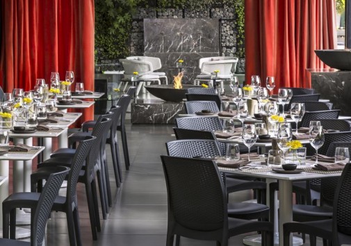 Изысканный ресторан Adra, украшенный мрамором и ляпис-лазурью, сервирует деликатесы средиземноморской кухни, представленной шеф-поваром Tomás Olivera.
